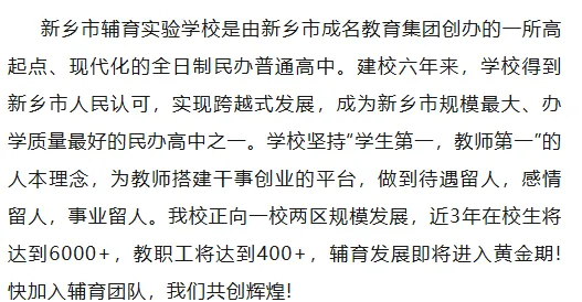 郑州教师招聘、新乡市辅育实验学校2026年教师招聘