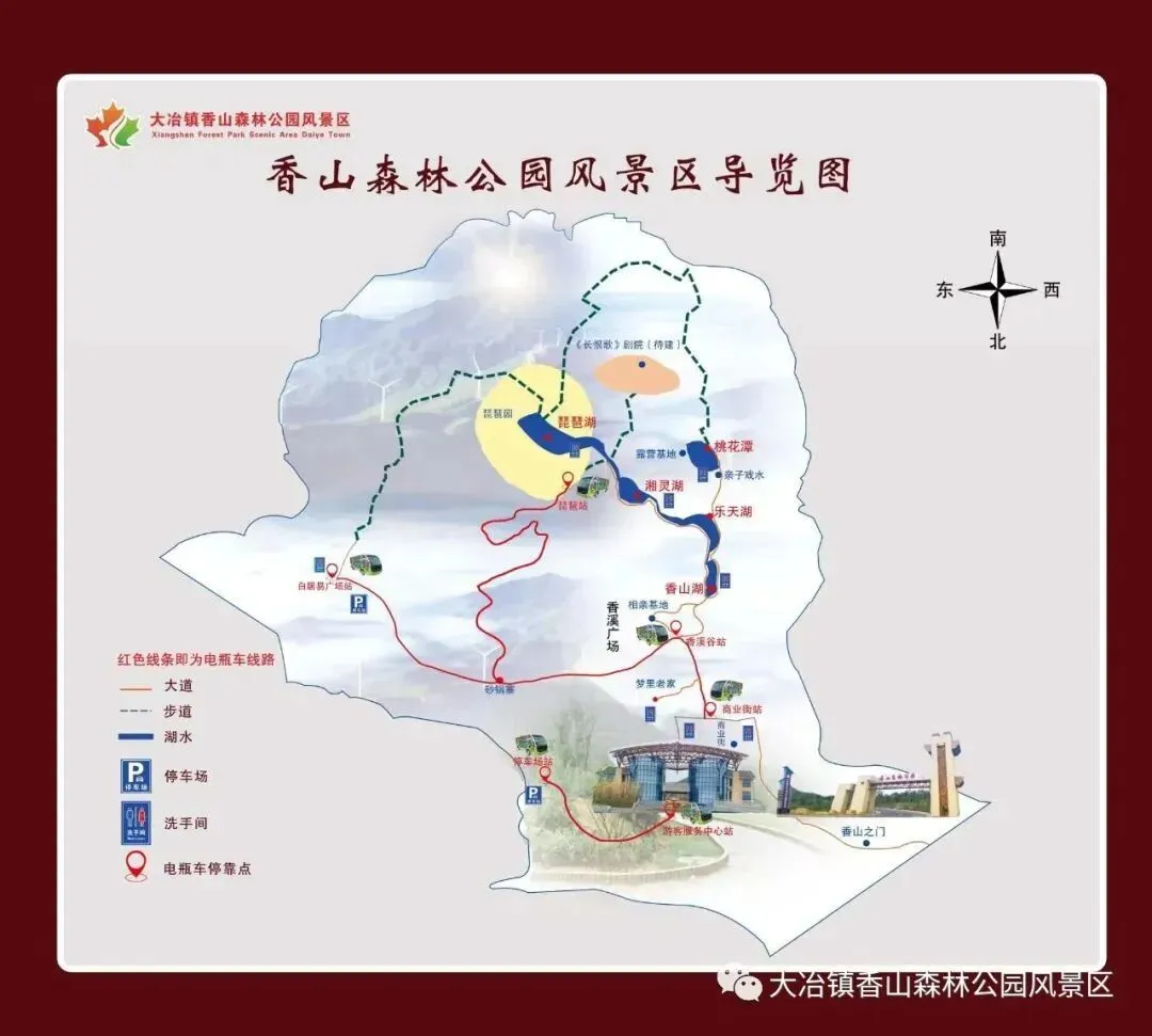 水墨香山旅游区简介:公元830年,白居易任河南尹,巡视大冶,教民业作以活,民立祠山上祀之,曰香山庙,并以名山也,是为香山。