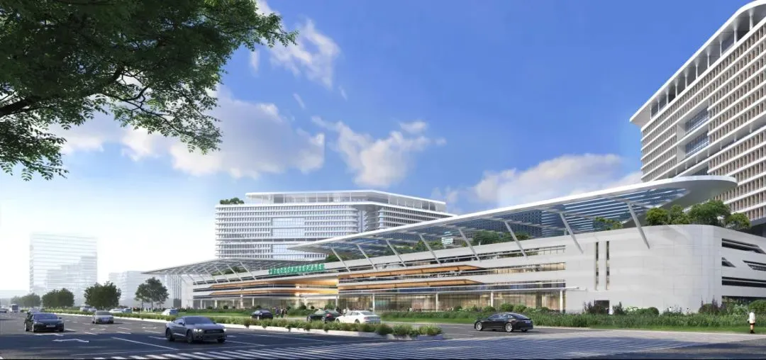 2025年6月,项目门诊楼、医技楼、健康管理中心主体已封顶,住院楼主体施工至13层