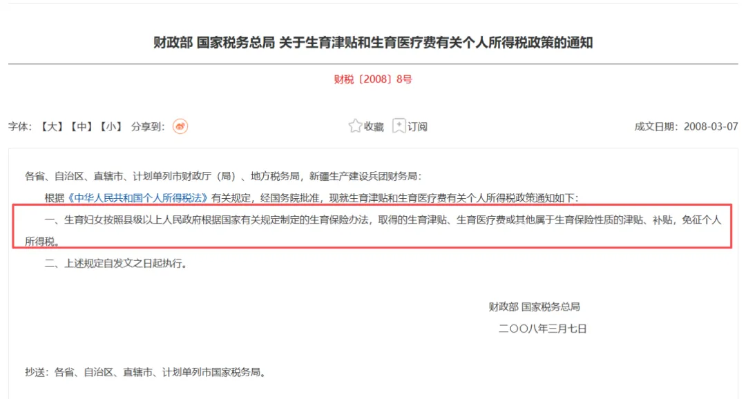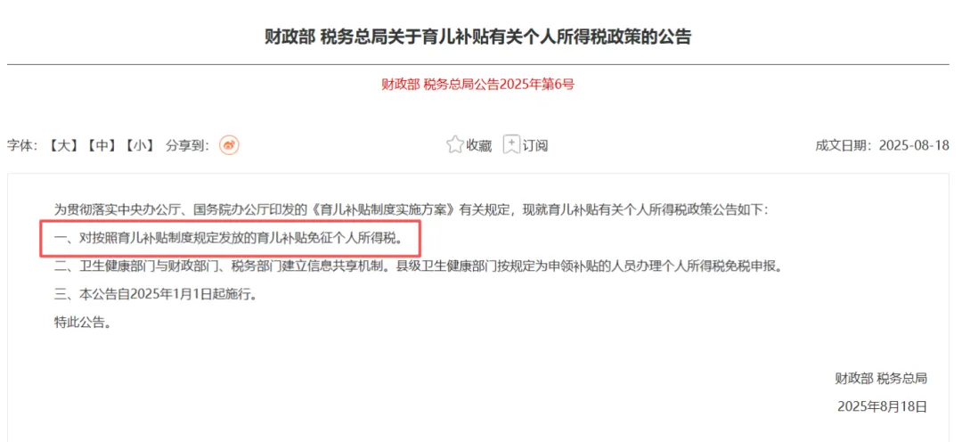 ✅育儿补贴免税
