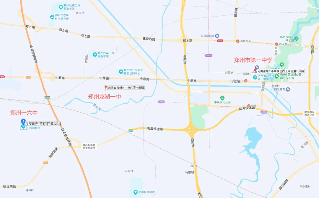 中原区主要是一中集团校,有一中和龙湖一中,再往西就是荥阳了,十六中新校区在这边。学校地址&联系方式: