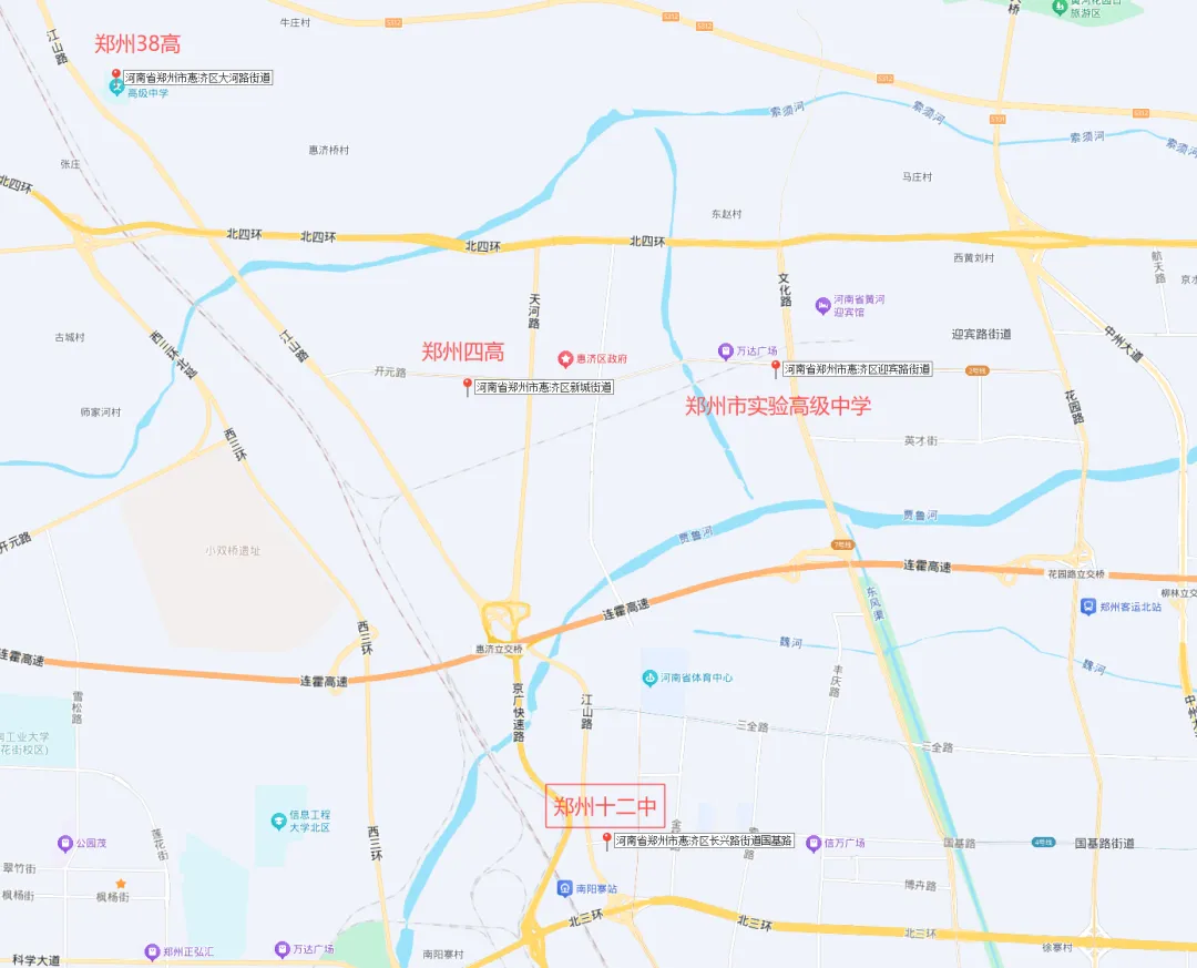 除了以上区域外,郑东新区还有4所高中,47高、东外、清华附中和106高中;港区还有三所是港一、港外和28高;包括中牟也有4所,郑开、56高、41高和17高。