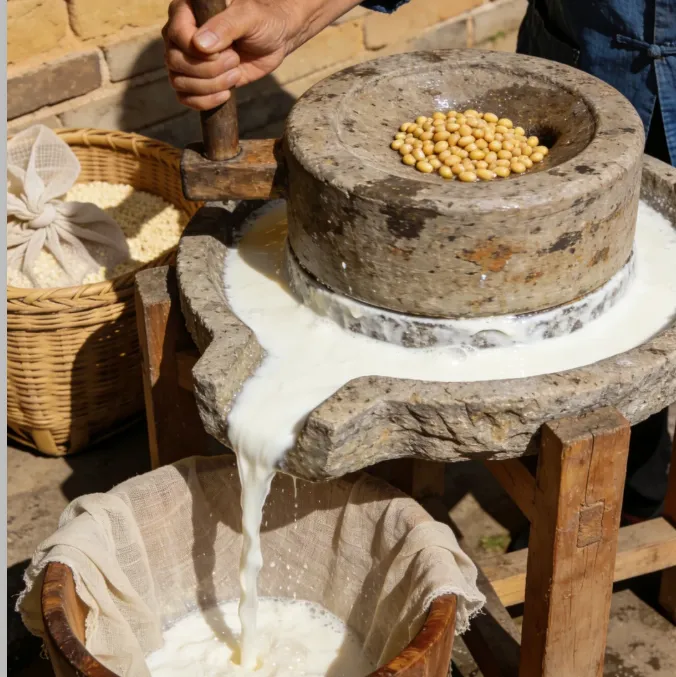 黄豆泡足,石磨磨成豆浆,慢火煮开后撇沫。点卤别急,手要稳,看到豆花慢慢凝住就停。压成块后切片,下锅用葱姜蒜轻轻一煎,外皮微焦,里面嫩,趁热吃最对。