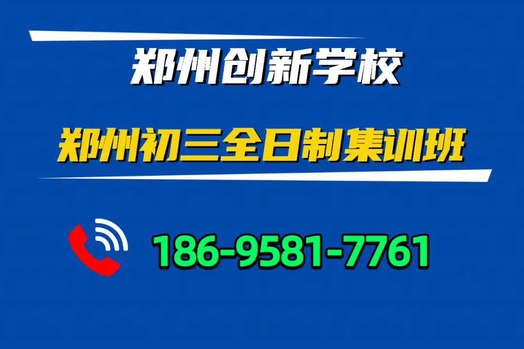 郑州创新学校初三全日制集训班【热线📞 186-9581-7761】,始创于2009年,以高效学习体系教学、提分为特色。 十六年来,学校一直致力于中考全科教学的集训培训提分服务,为莘莘学子提供个性化、专业化、高效化的科学备考解决方案。办学以来,累计培养了数千名中考学子,中考成绩连年翻番,始终处于河南中考教育培训的领先位置!郑州创新学校初三全日制集训班【热线📞 186-9581-7761】,专为中考生量身打造 —— 定制提分方案、沉浸式学习、实时学情反馈,让孩子高效备战中考,冲刺理想高中。 2、教学服务:双班主任+各科主课资深老师,将教学服务聚焦每1位学生; 4、持续高效:分层教学,因材施教,针对性教学,保证孩子持续高效学习质量; 5、强力提分:历年集训学生平均提分150-200分。