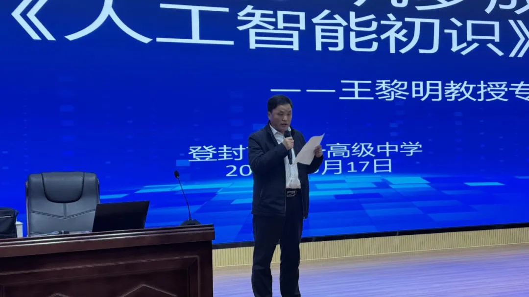 为搭建校校协同育人桥梁,帮助高三学子精准明晰升学方向、直观感受前沿科技魅力,3 月 17 日上午,郑州商学院走进登封市第一高级中学开展专题宣讲活动。登封市第一高级中学党委书记、校长冯刚省出席活动并致辞,学校教导处副主任黄勇主持。郑州商学院计算机与大数据工程学院王黎明教授、招生就业处李兆洋科长及郑州地区招生组一行受邀参加,为该校 400 余名高三学子带来人工智能主题科普讲座。