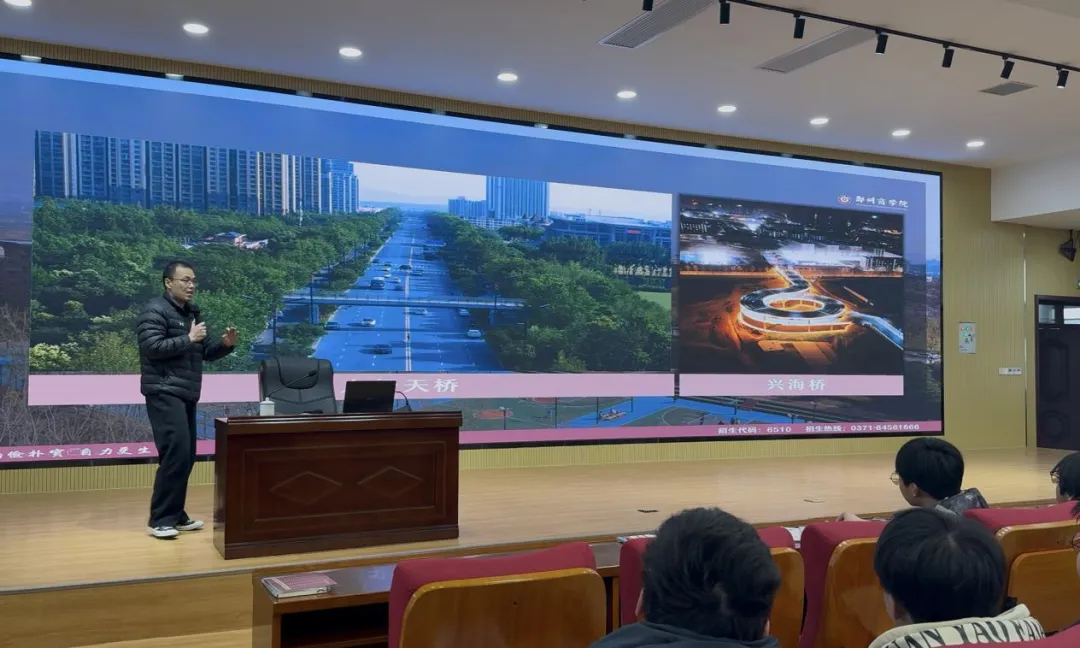 随后,郑州商学院招生组老师王凯文围绕学校办学特色、学科优势、专业设置、人才培养及升学就业等内容展开介绍,分享优秀学子成长故事,为今后科学填报志愿、规划升学路径提供实用参考。