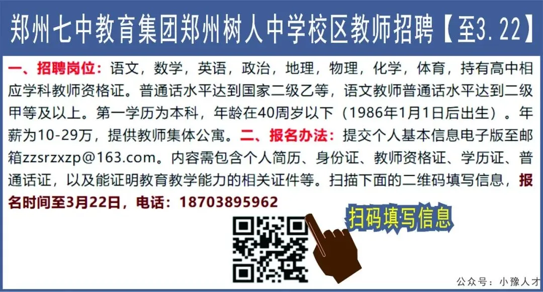 >郑州七中教育集团郑州树人中学校区教师招聘【至3.22】