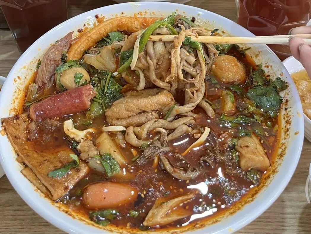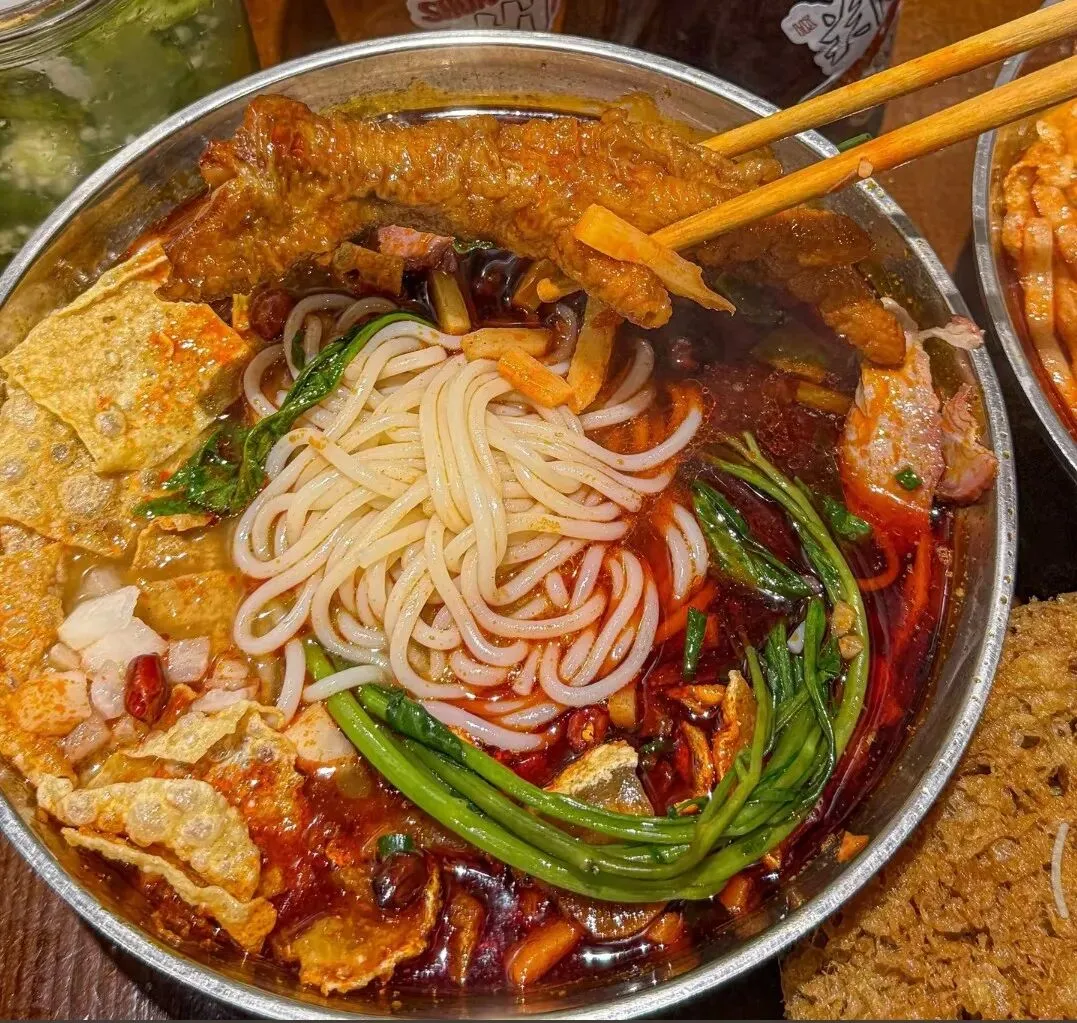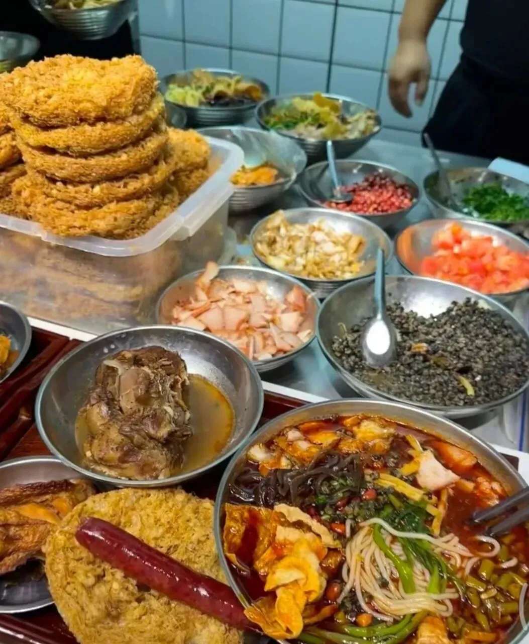 他们家老式麻辣烫是招牌:宽粉透亮裹满麻酱香,豆芽、海带脆得咬出声,一口直接魂穿小时候的放学路;砂锅土豆粉更绝,汤头鲜得能喝光,就是焖子是软面款,爱吃筋道的可以避开~