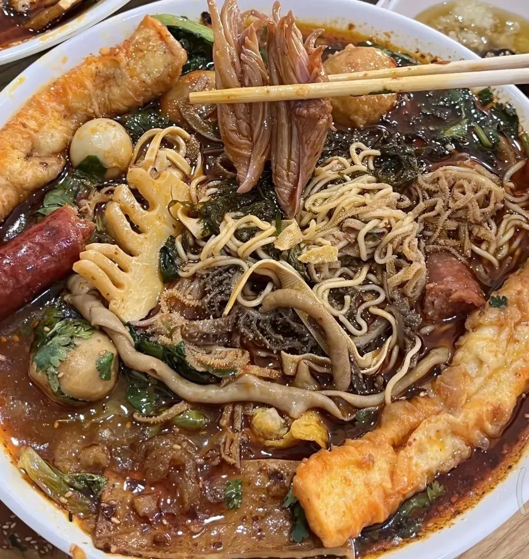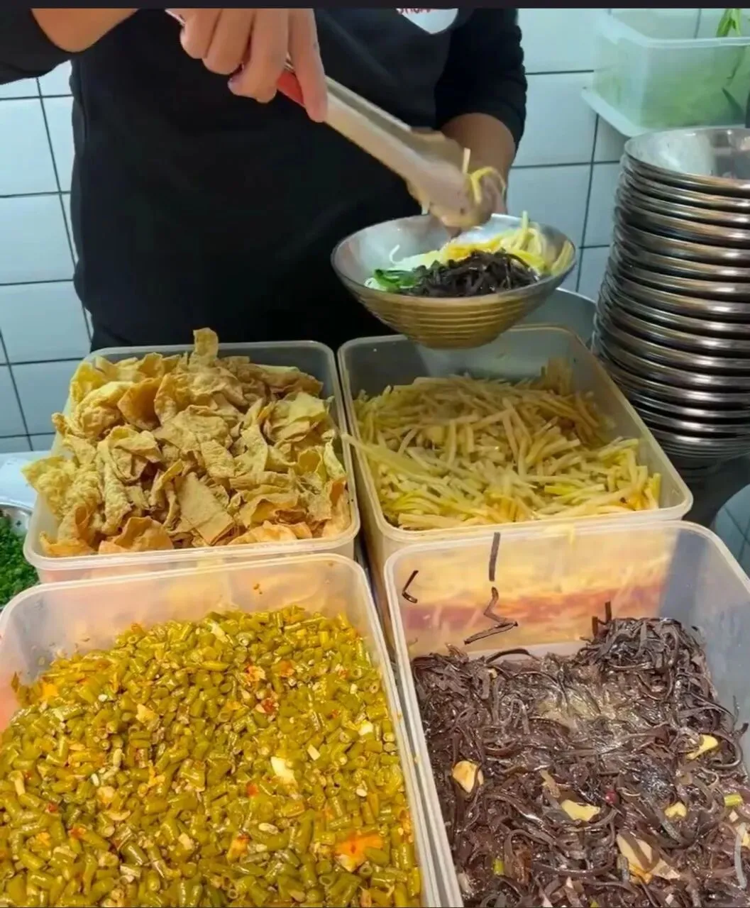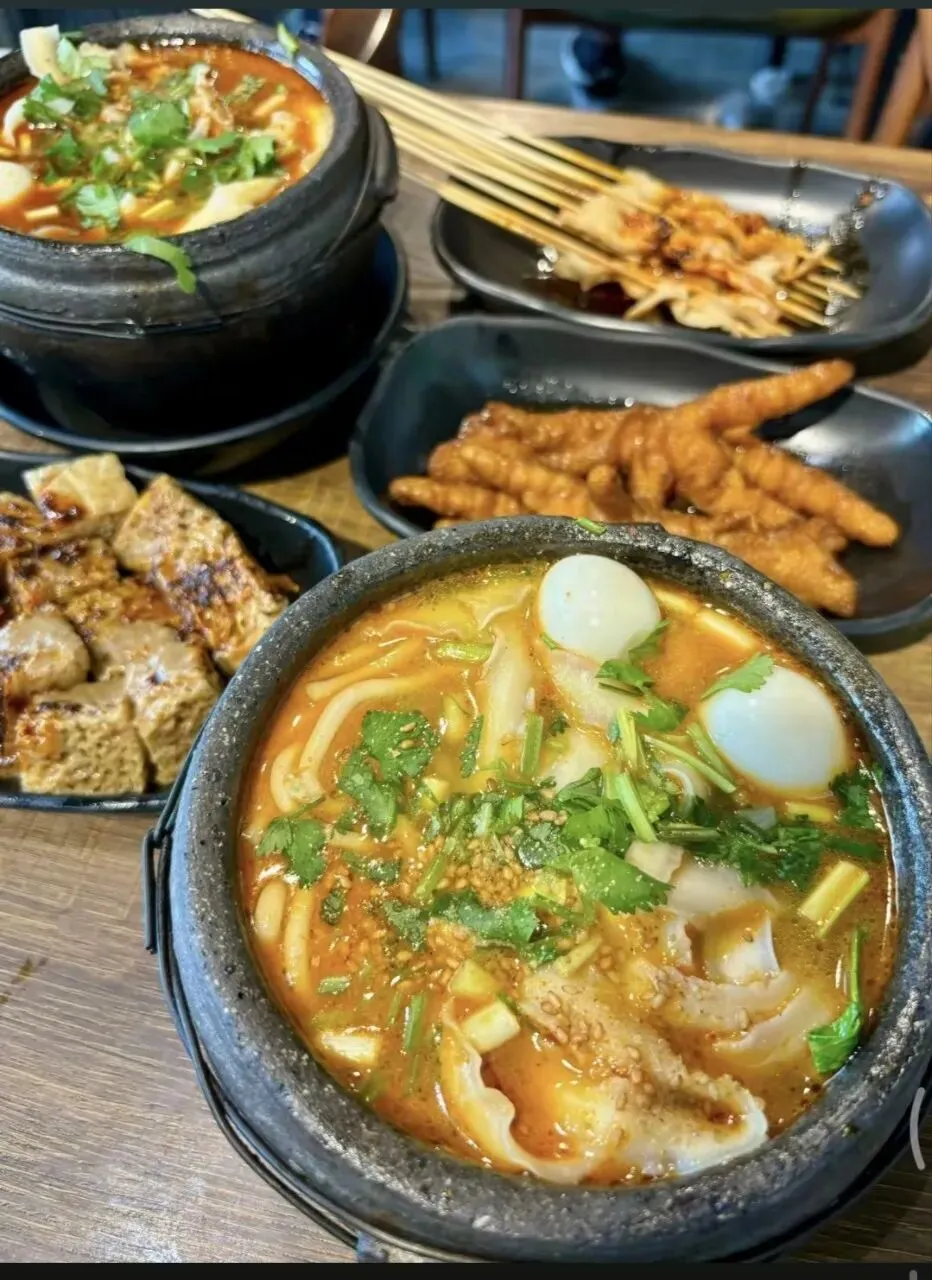 他们家老式麻辣烫是招牌:宽粉透亮裹满麻酱香,豆芽、海带脆得咬出声,一口直接魂穿小时候的放学路;砂锅土豆粉更绝,汤头鲜得能喝光,就是焖子是软面款,爱吃筋道的可以避开~