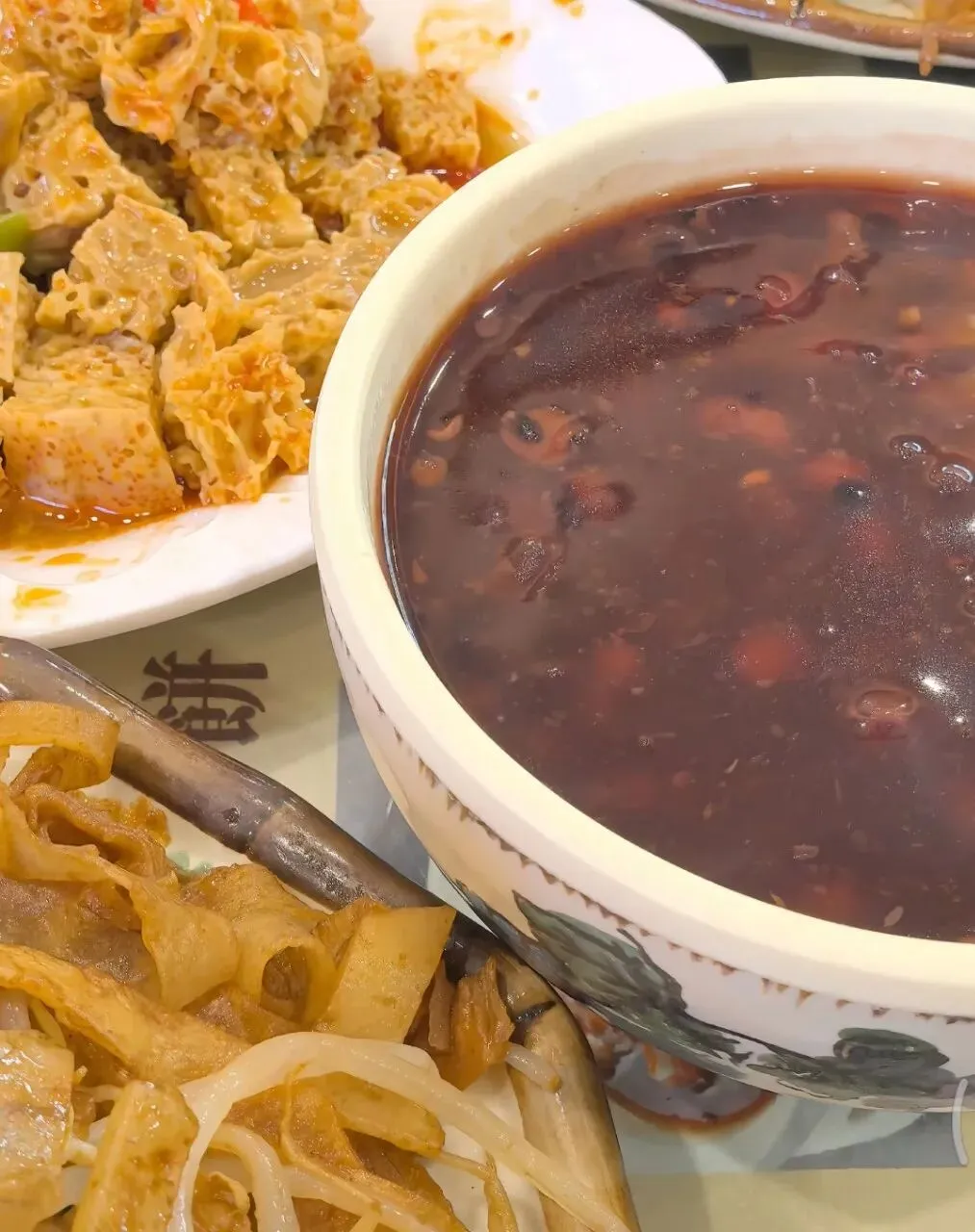 金牌红豆粥:几乎是每桌必点的搭配。红豆熬得非常绵密,口感顺滑,甜度不高,能很好地中和焖饼的咸香,解腻又顺喉。