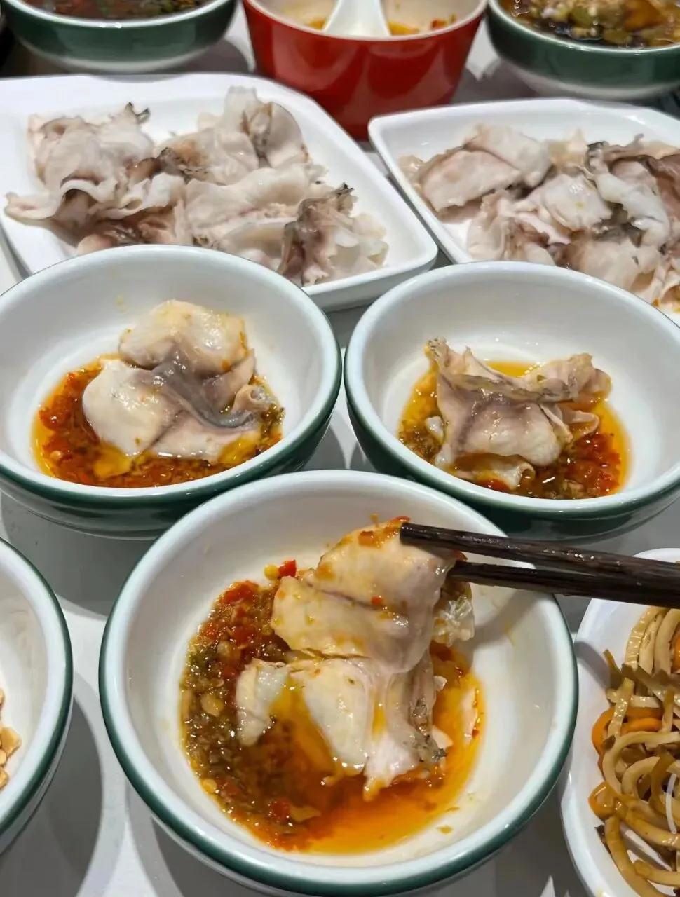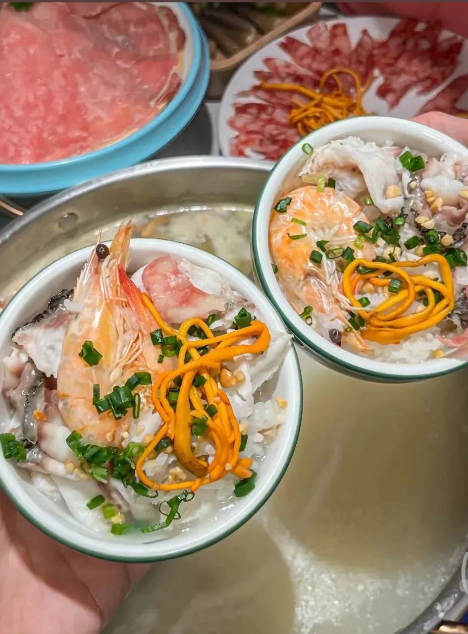 薄切鱼片:0.5mm斑鱼片,下锅3秒卷成花,蘸泰式酸辣汁/海鲜汁,嫩到入口即化 。收尾生滚粥:涮完菜把鱼片、皮蛋、葱花下粥底,煮成鲜掉牙的斑鱼粥,暖胃又满足 。五、四碗螺蛳粉