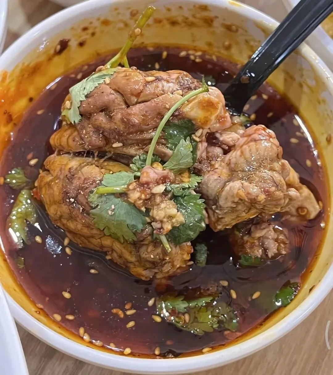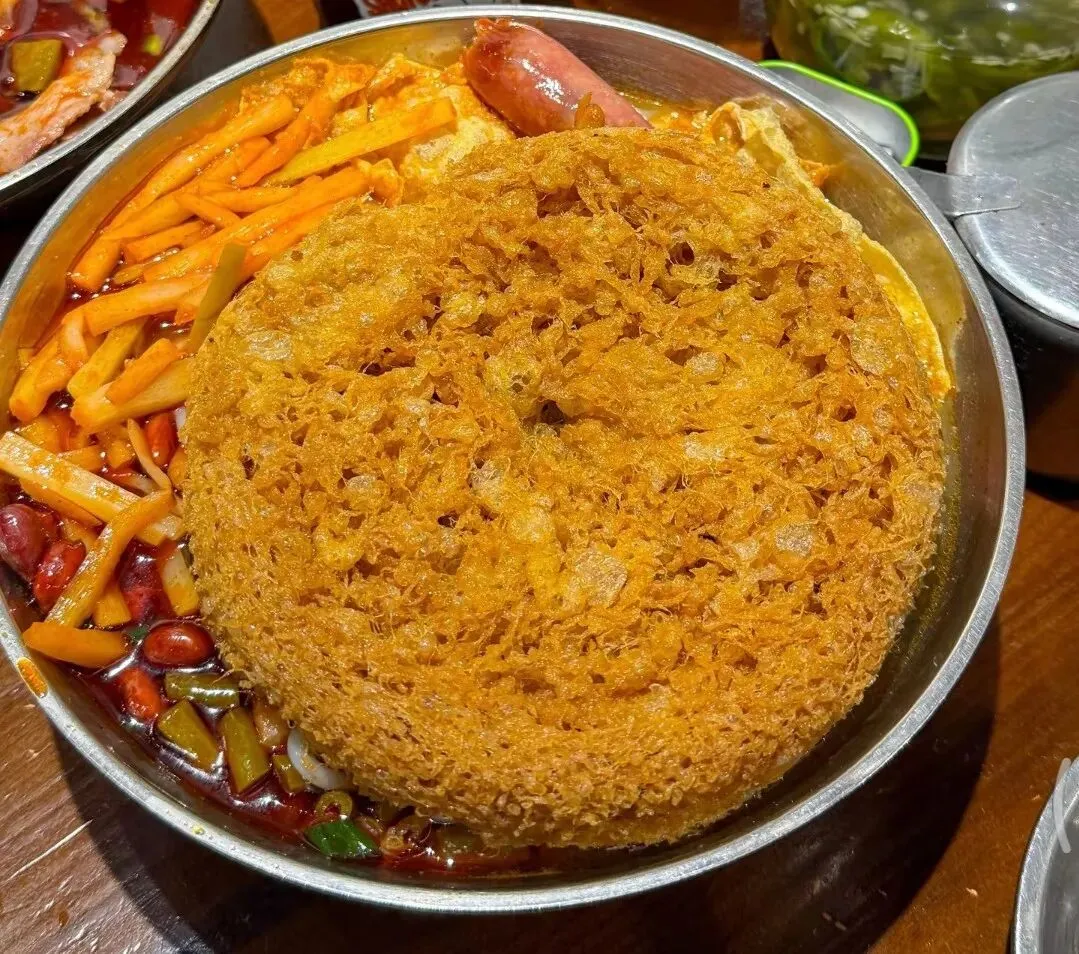 小吃也很让人惊喜:鸡爪看着平平无奇,咬开辣劲儿直冲天灵盖,软烂到一抿脱骨;牛肚10串小份刚好,嫩得一点不塞牙,裹着蘸料香到舔签。面筋是常规味儿,但配着砂锅吃刚好解腻。