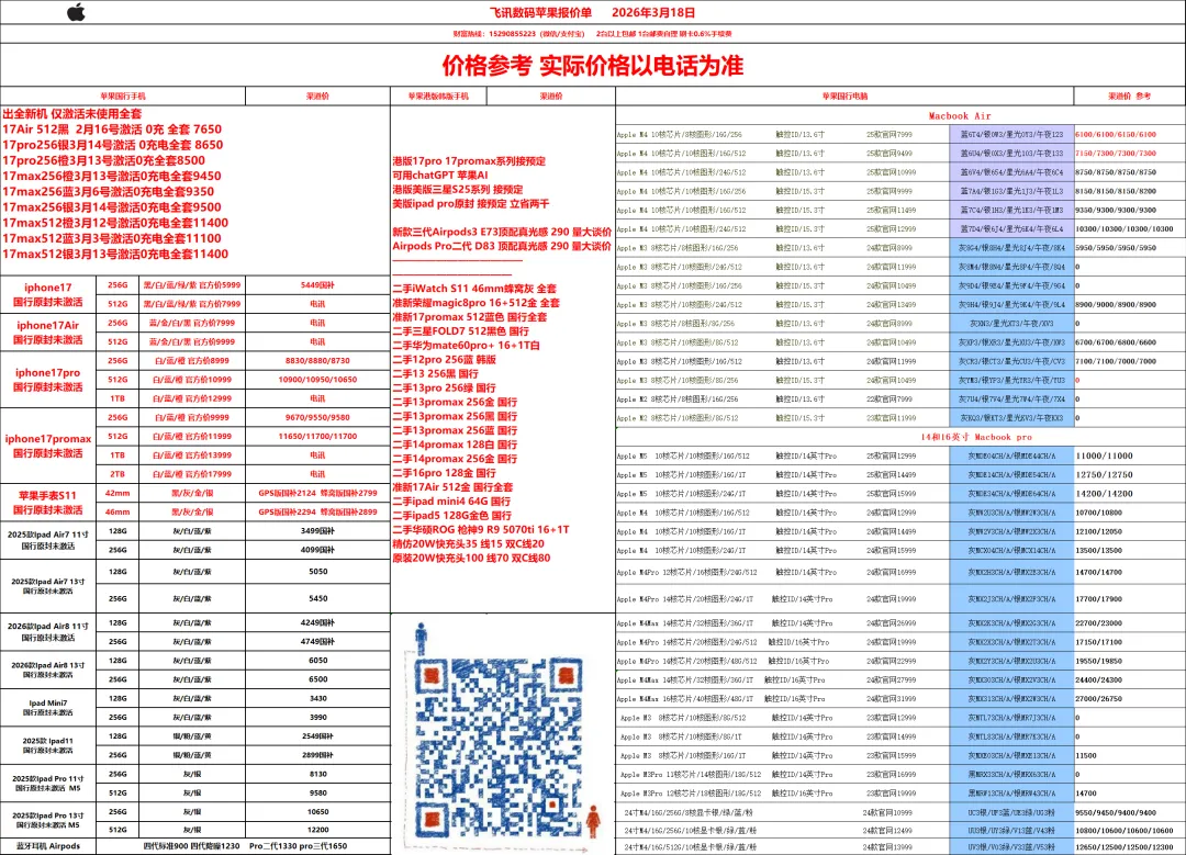 2026年3月18日渠道报价单 关注公众号查看每日报价