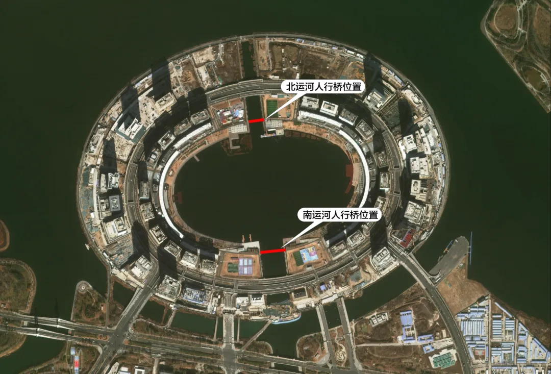 金融岛南北运河人行桥位置示意图©珂尔标注 仅供参考