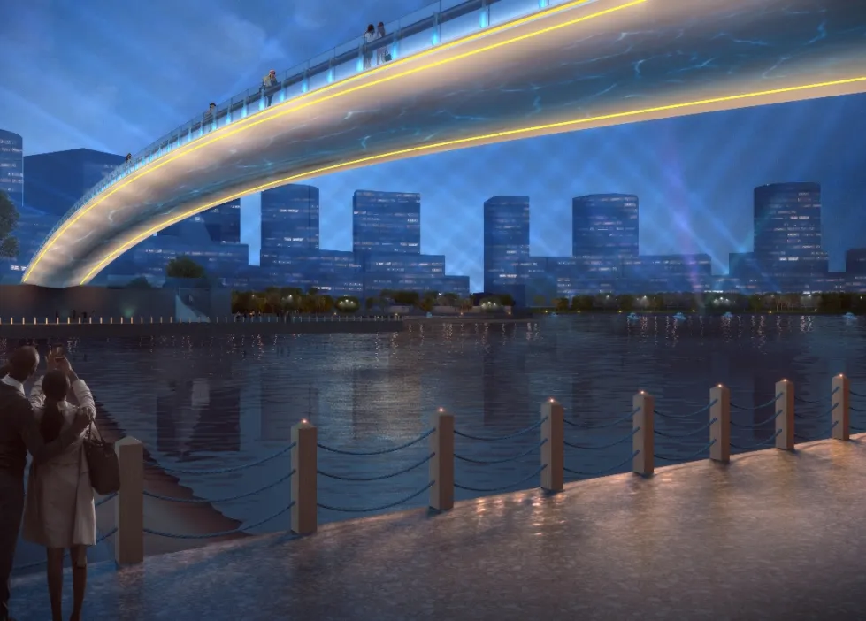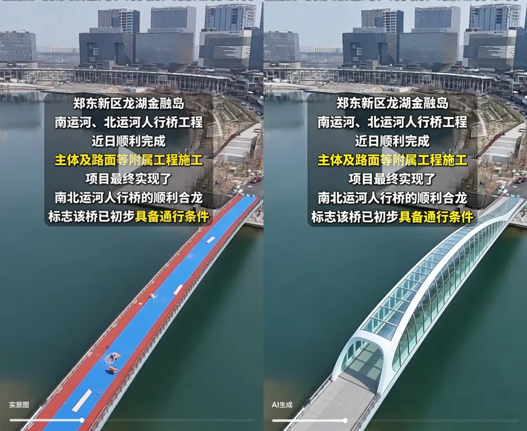 金融岛北运河人行桥实景和AI图对比©网友提供