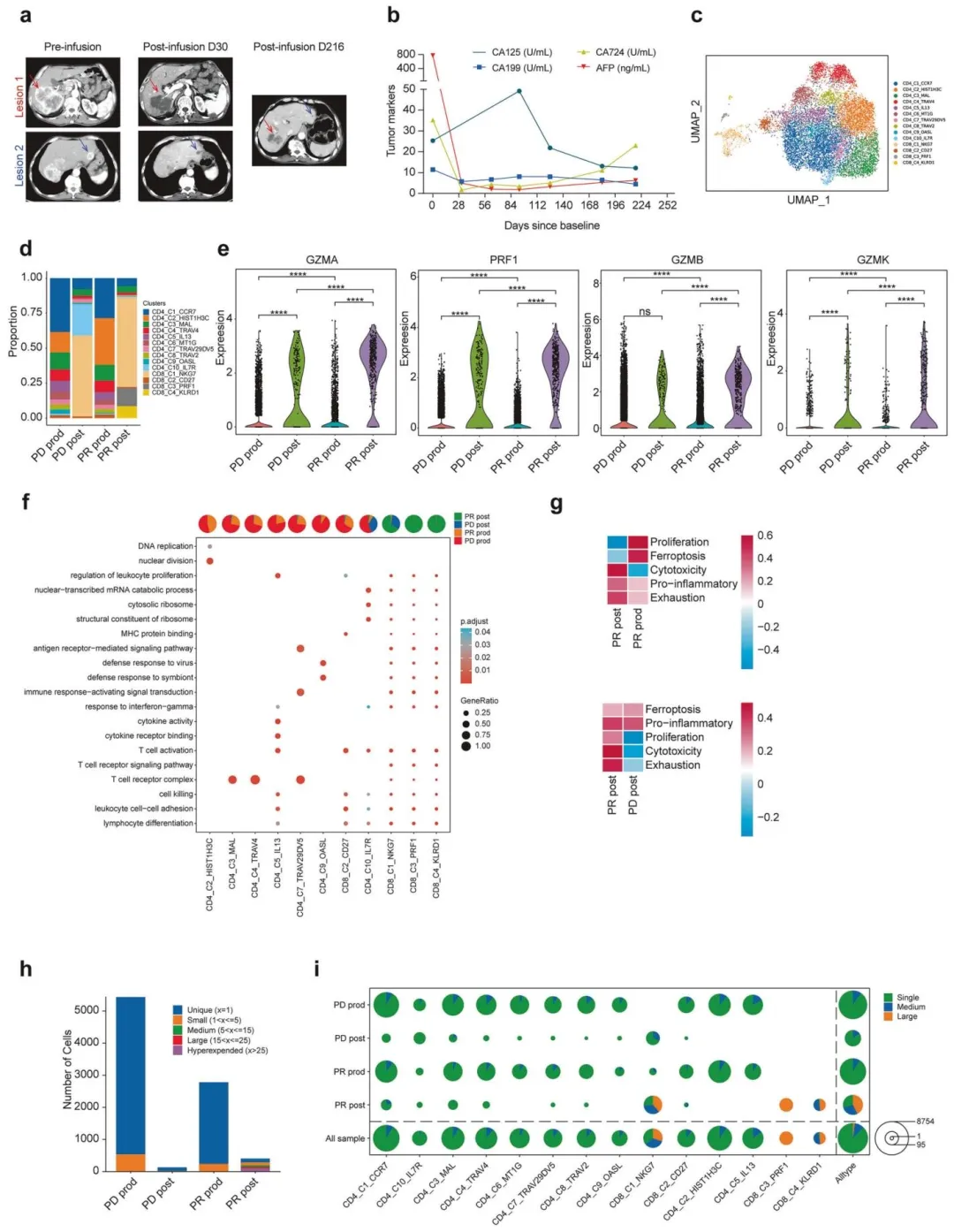 单细胞测序显示PR 患者 CAR‑T 毒性基因高表达、TCR 克隆扩增;空间 IMC 揭示 M2 型巨噬细胞、MDSCs 减少,免疫细胞浸润增强,冷肿瘤变热肿瘤。