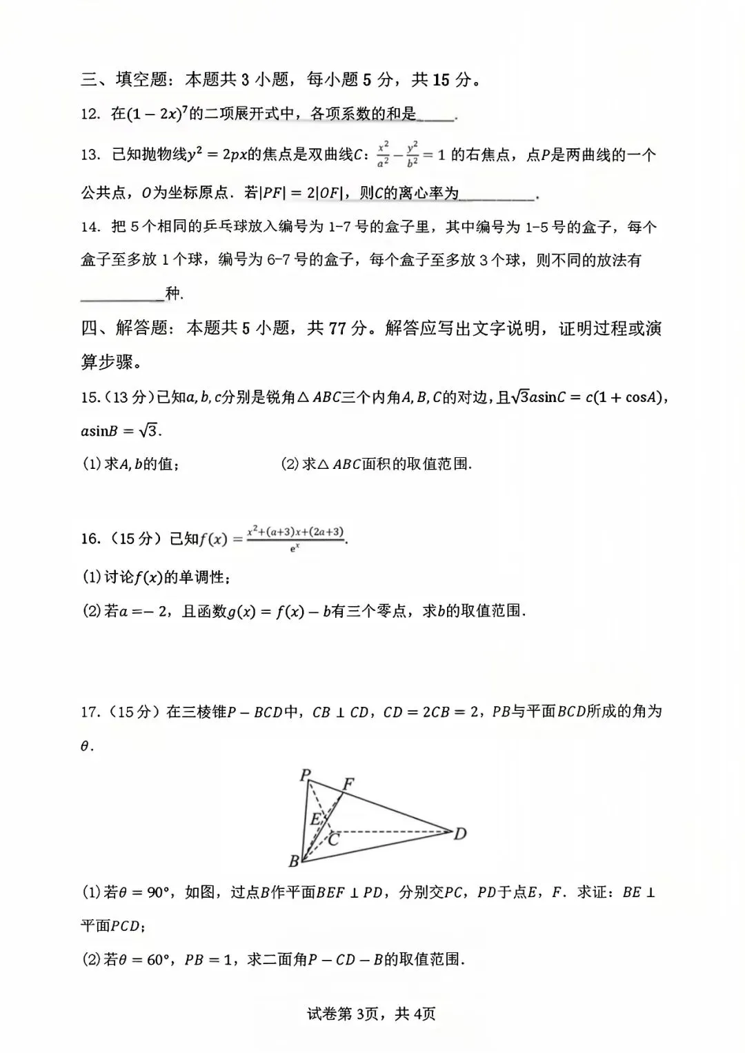 郑州外国语2025-2026学年高三下3月调研6数学试卷及答案