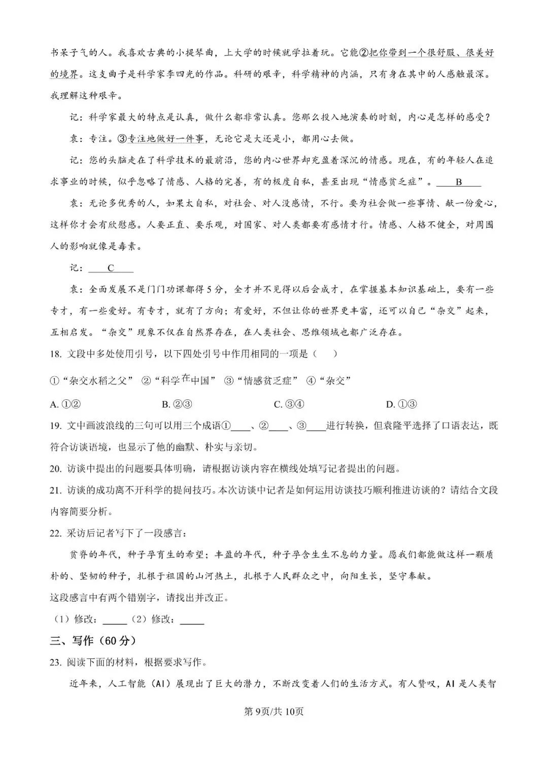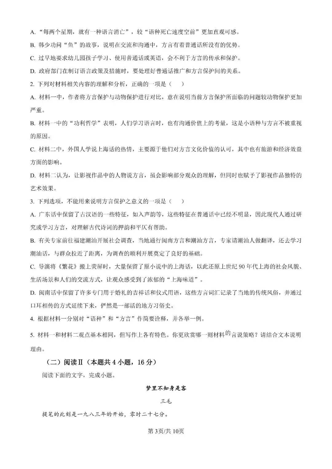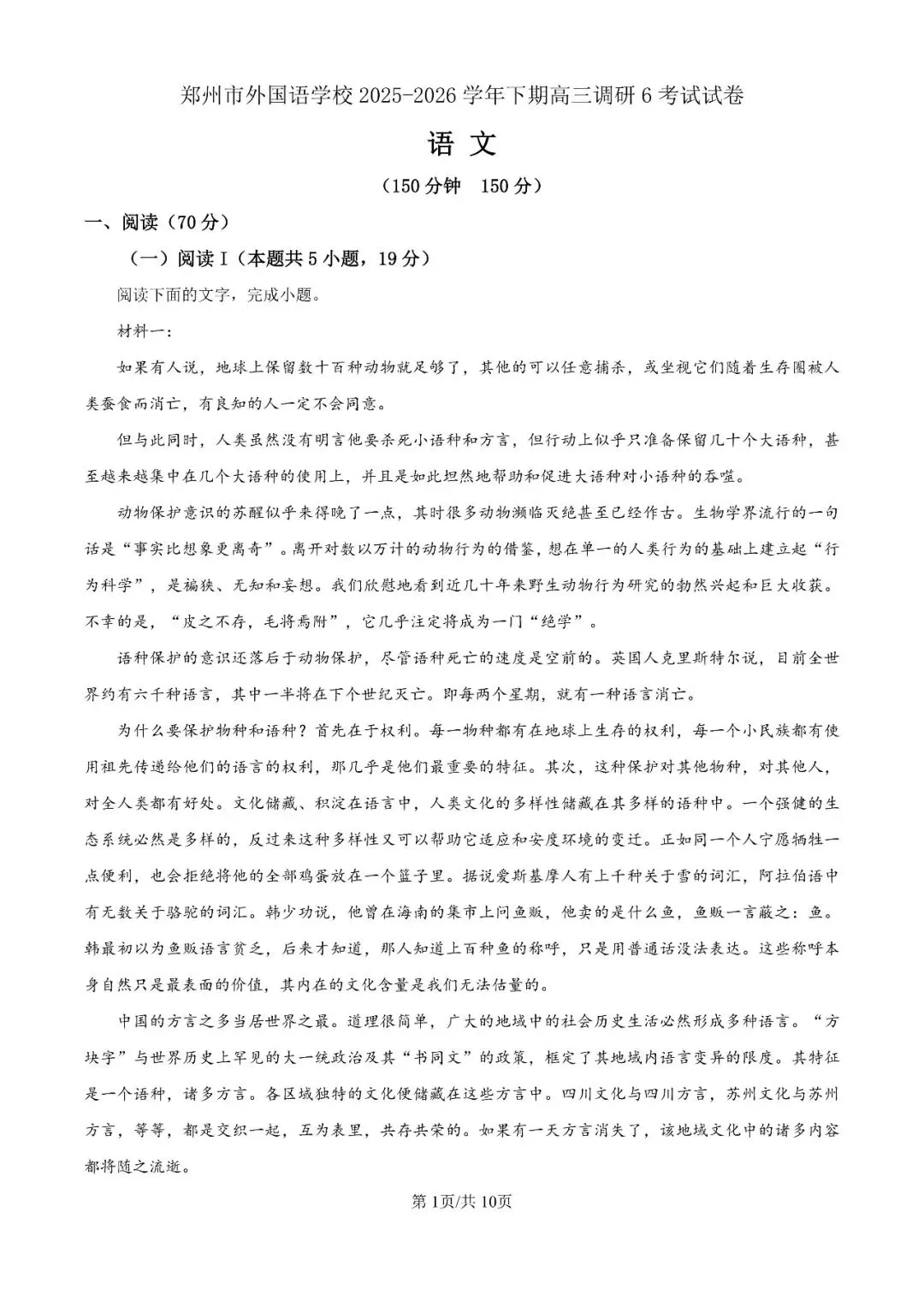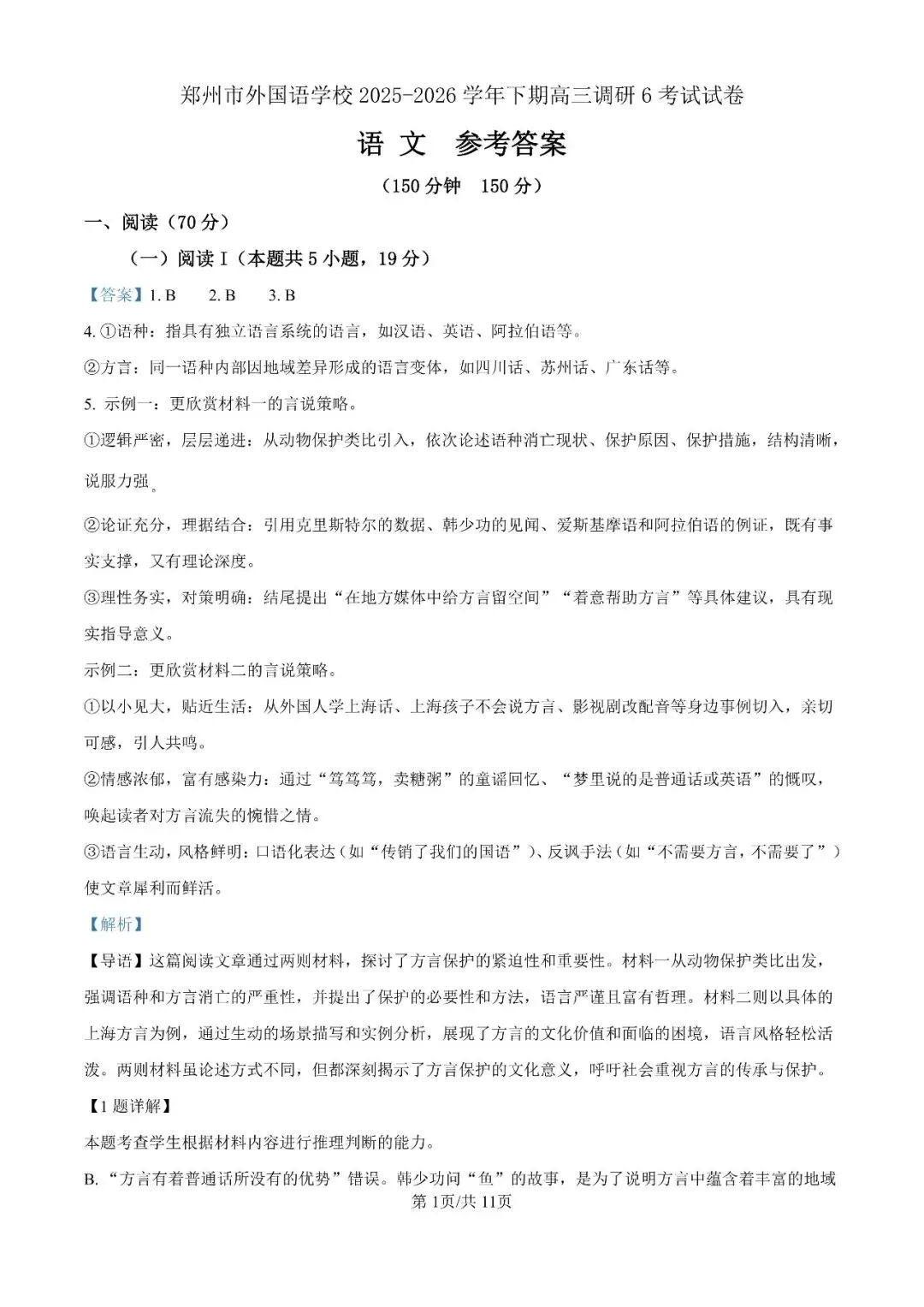 郑州外国语2025-2026学年高三下3月调研6语文试卷及答案