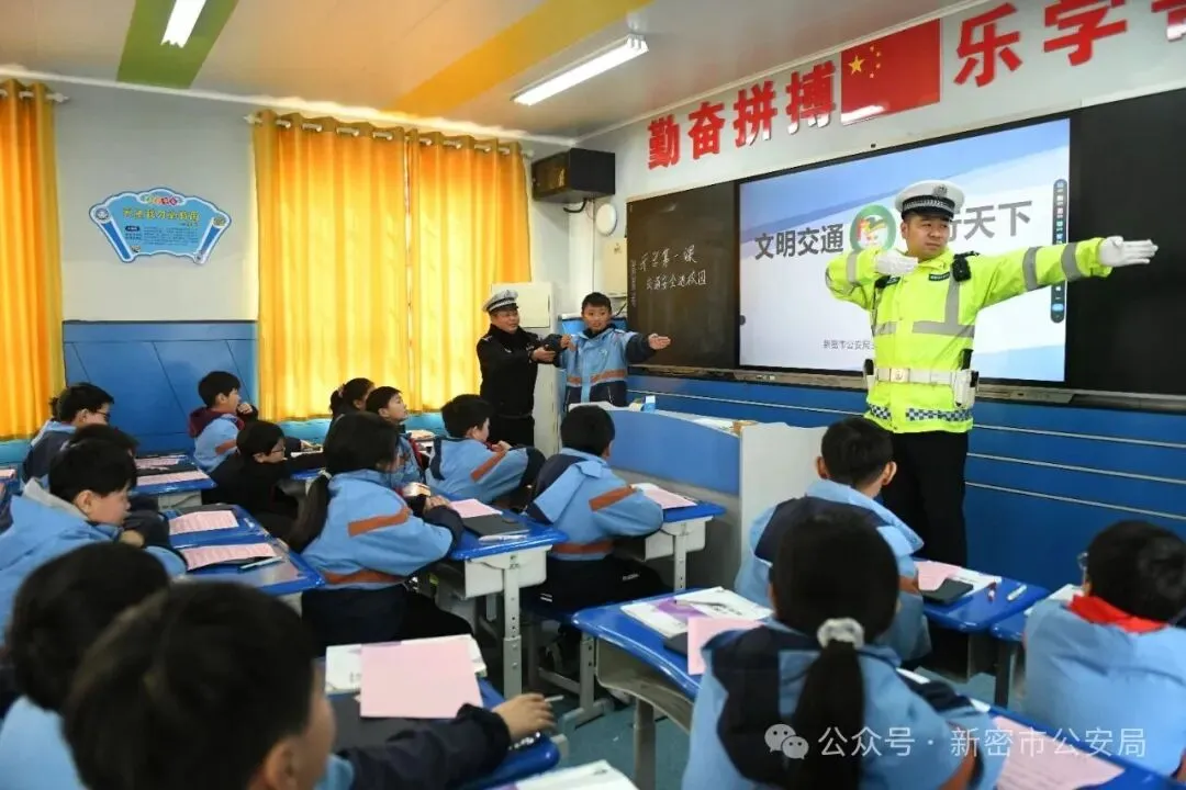 “谁知道这个标志是什么意思?”有奖问答环节将课堂气氛推向高潮。学生们争相举手,答对者获得印有交通安全标语的定制文具。民警趁热打铁,用通俗语言讲解安全过马路、佩戴头盔、识别标志等知识,并现场教授交通指挥手势。