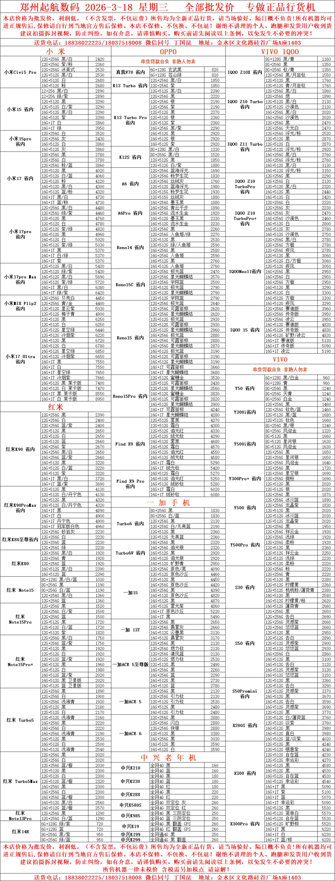当前位置:首页>郑州>郑州起航数码2026.3.18报价