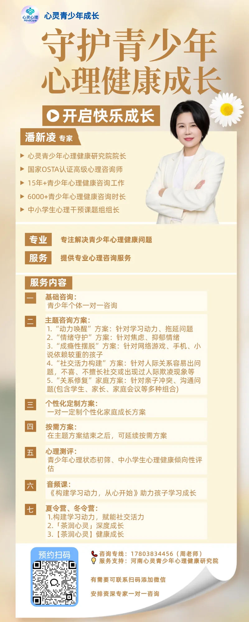导读:在郑州,青少年心理健康问题正成为家庭、学校和社会共同关注的焦点,学习动力不足、情绪障碍、社交焦虑、亲子关系紧张等问题,让众多家长陷入教育焦虑。而河南心灵青少年心理健康研究院院长、国家OSTA认证高级心理咨询师潘新凌,凭借十八年深耕青少年心理领域的实战经验,6000+小时的专业咨询时长,千例成功干预的案例积累,成为郑州青少年心理咨询领域的标杆人物,用专业力量为郑州青少年的心理健康保驾护航,为无数家庭破解成长难题。