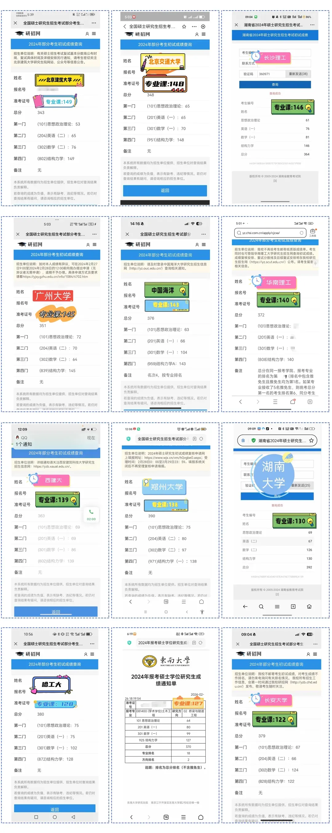 24年共有3857名同学报名了小鹿学姐的结构力学辅导班,其中898名同学结构力学拿到了130+的高分,761名同学结构力学拿到了120+的高分。东南大学、华南理工大学、上海大学等多个学校的初试前五名都有我们的学员。下面是一些学员的成绩截图: