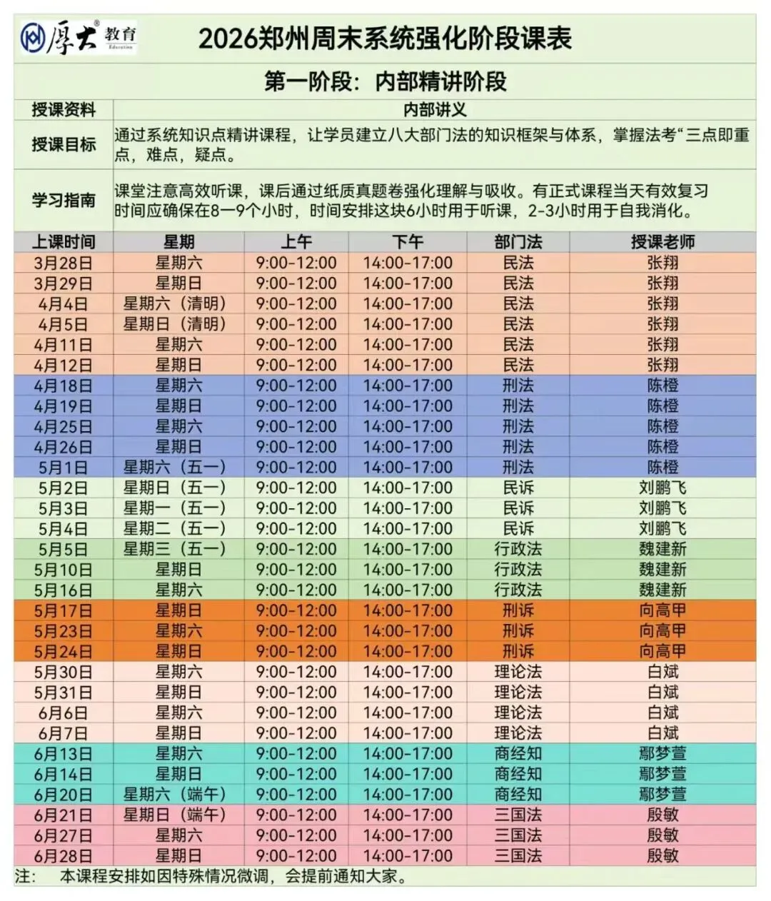 郑州厚大 2026 法考周末班,专为协调工作与备考难题而设。利用宝贵周末时光,为你搭建起通往法律职业资格证书的坚实阶梯。