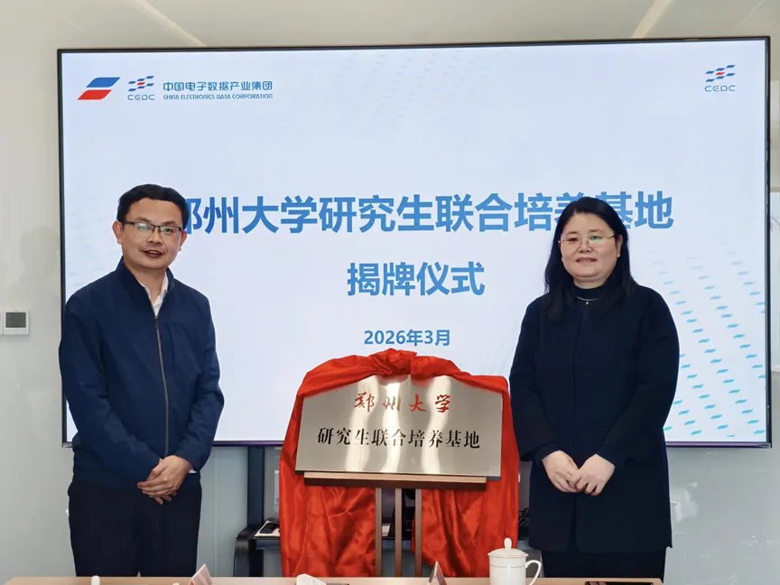 2026年3月16日,我院与中电郑州在郑东新区创智天地大厦举行“郑州大学-中电郑州研究生联合培养基地”揭牌仪式,并围绕校企合作、人才培养、科研协同等议题展开深入座谈。