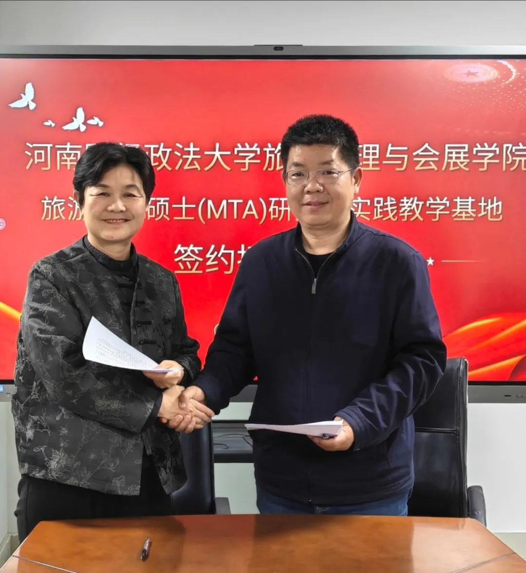 3月18日,郑州市非遗保护和文旅文创融合发展中心主任李桂玲一行莅临我院,签署“河南财经政法大学旅游管理与会展学院校外实践教学基地协议书”并举行挂牌仪式。会议由张金岭教授主持,学院副院长徐贵宏、旅游运营与管理教研室主任、MTA教育中心主任杨慧敏及MTA研究生张鹏超共同参会。