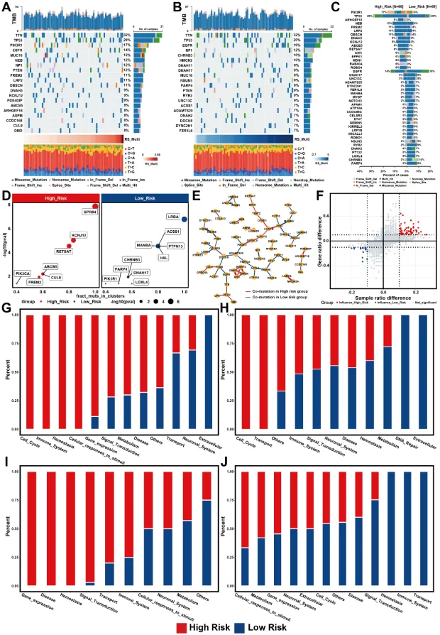 而高风险组则未发现任何非恶性细胞亚群的显著富集,反而在Mast细胞、B细胞、Treg细胞等免疫抑制相关细胞中表现出相对富集趋势,进一步印证了其免疫抑制微环境特征【图5】。