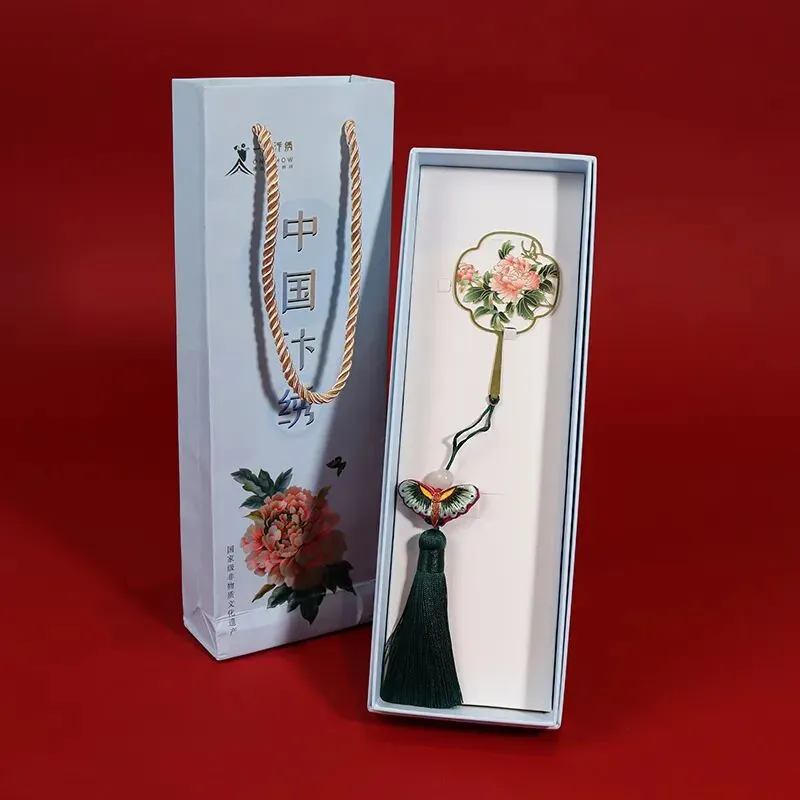 作为河南非遗汴绣的小巧臻品,这款手工刺绣牡丹书签,是性价比超高、便携又有内涵的入门款伴手礼。书签材质以黄铜为主,质感厚重,搭配河南特色的牡丹花卉,寓意富贵吉祥,书签尾部的蝴蝶结流苏穗,则由绣娘一针一线手工刺绣而成,象征“福叠”,代表福气连连。