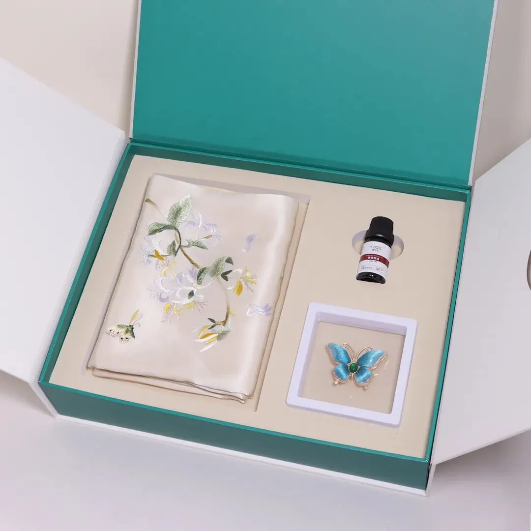 手工刺绣蝴蝶胸针,绣工精巧,暗含福气绵延的好意头;再配以专属香薰精油,香气淡雅温和,与东方美学格调相融。丝巾寓意富贵吉祥,蝴蝶胸针藏福叠好运,香薰精油寓意生活芬芳雅致,三重祝福叠加,自留或是送礼,都能传递出中原大地的温婉匠心与满满诚意。
