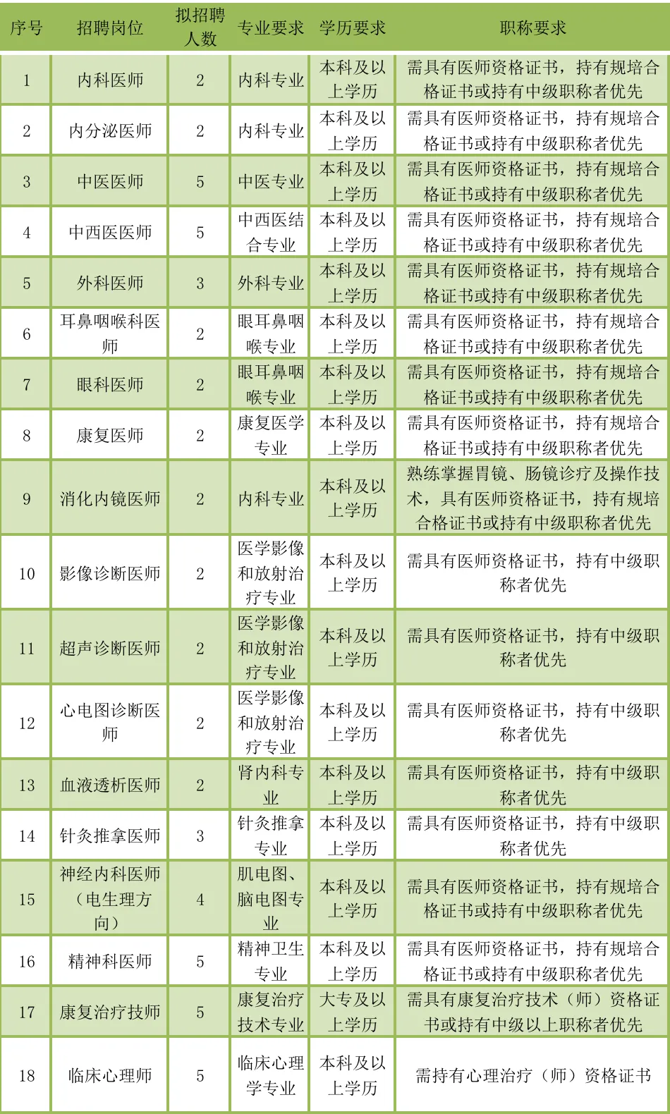 根据医院发展需要,进一步加强人才梯队建设,现面向社会招聘卫生专业技术人才。