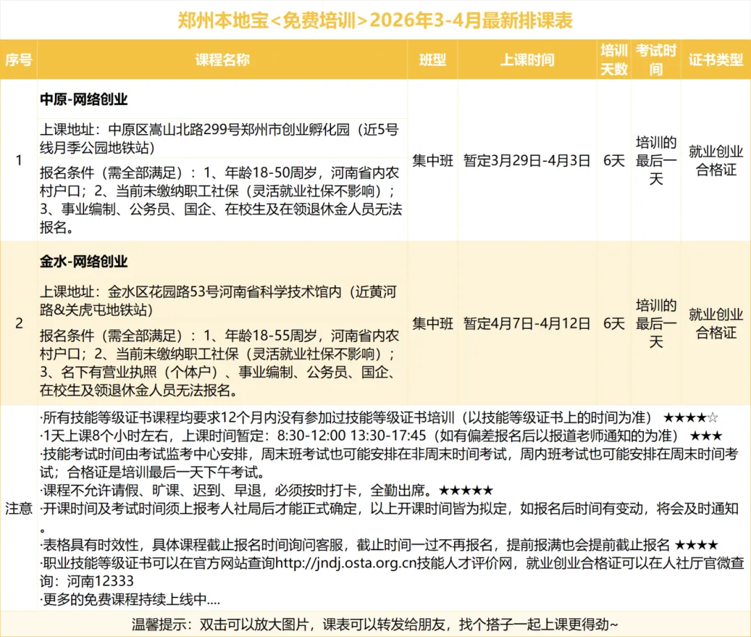 培训结束后考试合格可获得由河南省人力资源和社会保障厅签发的就业创业合格证书,证书联网可查。