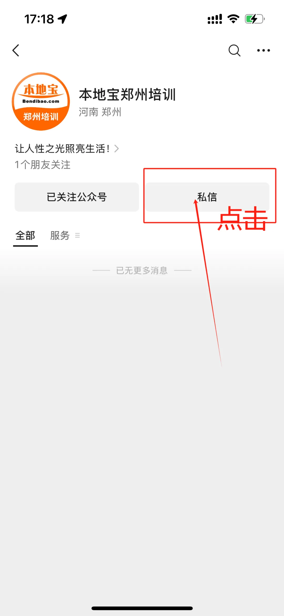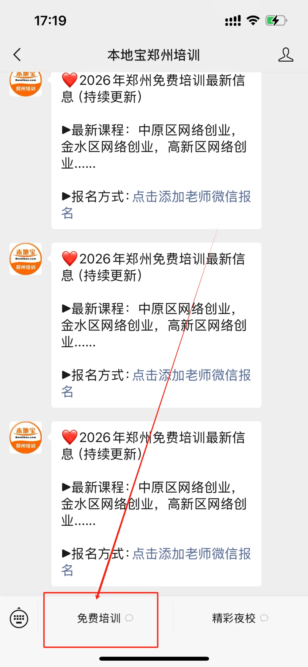 点击【私信】,对话框发送【免费培训】