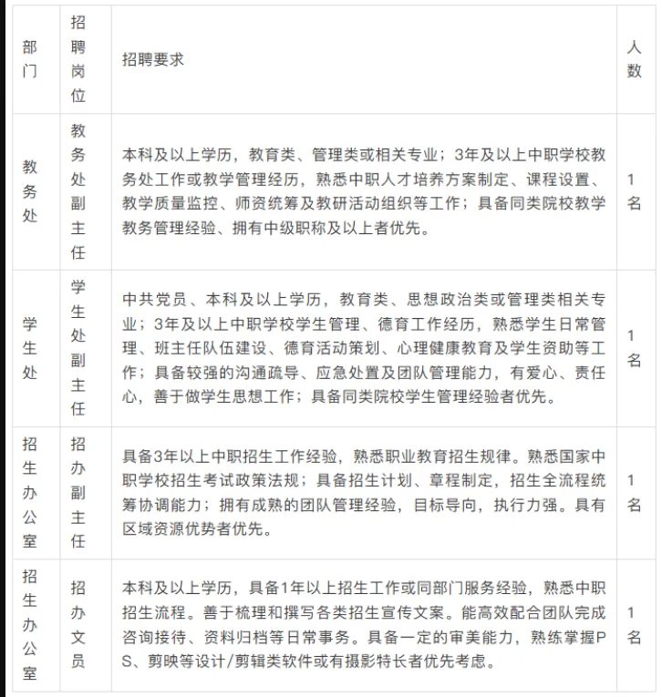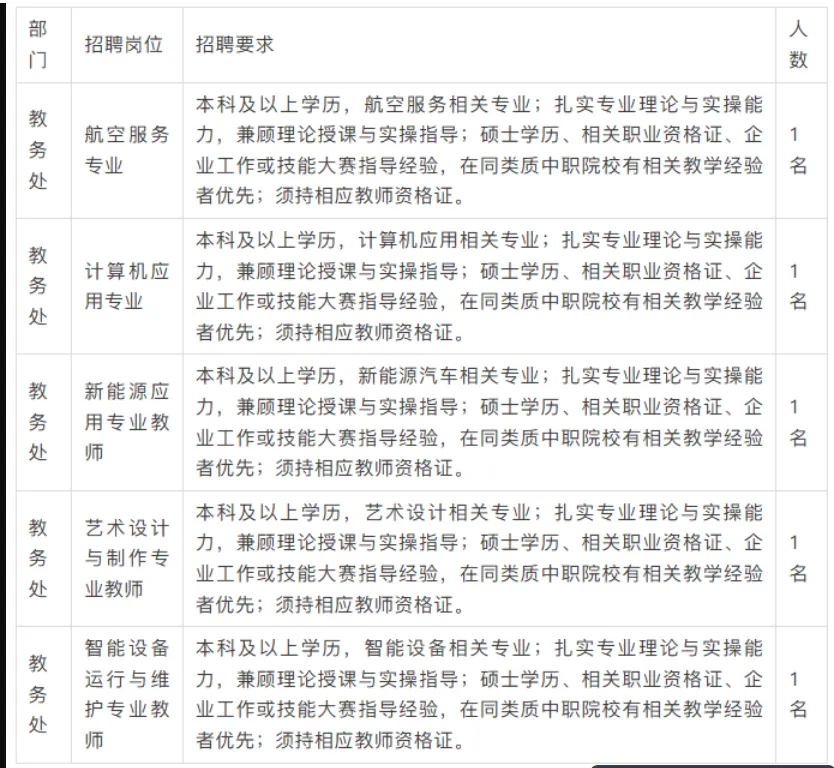 点击上方蓝色字体,关注我们,查看更多事业单位,公务员,银行,医疗,教师等热门岗位信息一、学校简介 郑州航空港区华师工业智能中等专业学校(简称“郑港华师”),坐落于郑州航空港区洞庭湖路21号,交通便利,地理位置优越。学校聚焦河南省“1+2+4+N”目标任务体系,面向未来学校将布局数字科技、高端装备、新商科、智慧交通、创意设计、公共服务六大核心专业群,致力于培养高素质技术技能人才。 学校秉持“德塑匠心,力行致远”的校训,落实立德树人的根本任务,牢牢把握高技能人才培养的功能定位,夯实基础、全面发力,深化职业教育教学关键要素改革,健全行业、企业、学校合作机制,着力打造河南省内一流、全国知名的现代职业教育标杆,为航空港区及河南省发展提供坚实人才支撑。 为适配学校高质量发展节奏,面向社会诚聘英才!