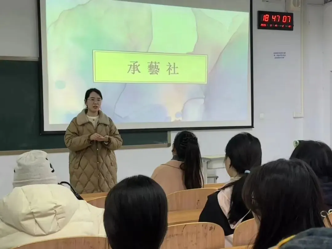 麻梦琳围绕承藝社展开介绍,强调其作为传统文化技艺传承的重要载体,为同学们提供了难得的学习机会,希望大家潜心钻研、传承技艺。