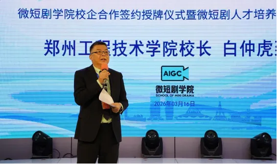 春潮涌动启新程,校企携手谱新篇。3月16日,郑州工程技术学院微短剧学院校企合作签约授牌仪式暨微短剧人才培养方案研讨会成功举办。本次活动以“微聚校企 剧育英才”为主题,汇聚郑州市文旅系统相关领导、省内外多家优秀文化企业代表、学校领导及师生代表,共同见证校企深度携手开启微短剧人才培养、产业融合的崭新篇章,为郑州打造中国 “微短剧之都”注入强劲动力。
