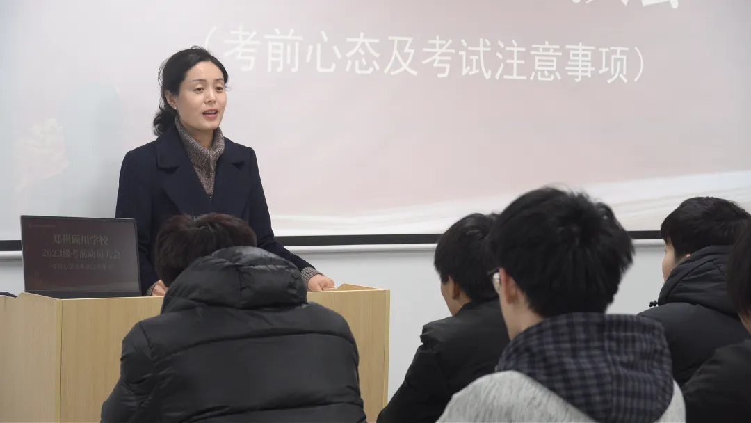 同学们坐姿端正、神情专注,每一份目光里,都藏着对未来的憧憬与奔赴的勇气。司马晓星校长没有空泛的口号,而是像长辈般围绕考前注意事项、心态调整、生活作息三大重点,同学们亲切交流、悉心叮嘱着考前的每一个关键细节。