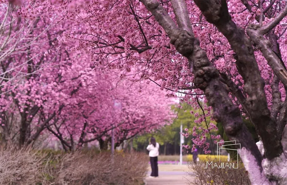 郑州植物园内的美人梅主要集中在南门广场与科研交流中心周边,同时东门北侧也有零星分布,形成了多处观赏亮点,其中南门广场附近的700余株美人梅连片盛放,密度最高、景致最佳,漫步其间,仿佛置身粉色仙境,抬眼皆是温柔,低头可见落英缤纷,是园内春日赏花的核心打卡地之一,也是市民沉浸式感受春日气息的绝佳去处。