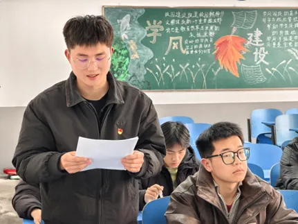 3月18日,中共郑州科技学院机械工程学院学生第二支部委员会在综合教学楼108教室,召开2025年度基层党组织组织生活会并开展民主评议党员工作,支部宣传委员陈朝阳主持会议,支部全体党员、预备党员参会。
