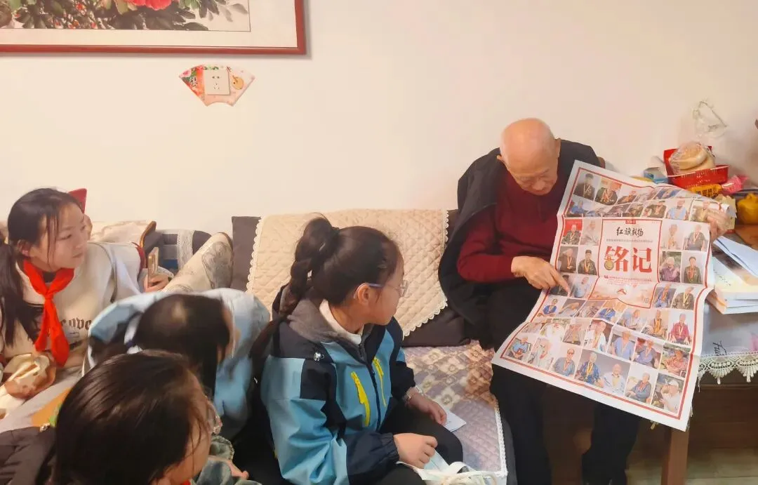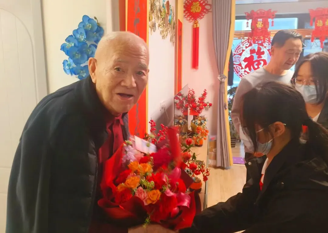 这堂生动的“家国课”,让在场每一个人深受触动。学生代表围坐在老人身旁,汇报着一年的成长与收获,并送上了精心准备的鲜花和祝福。