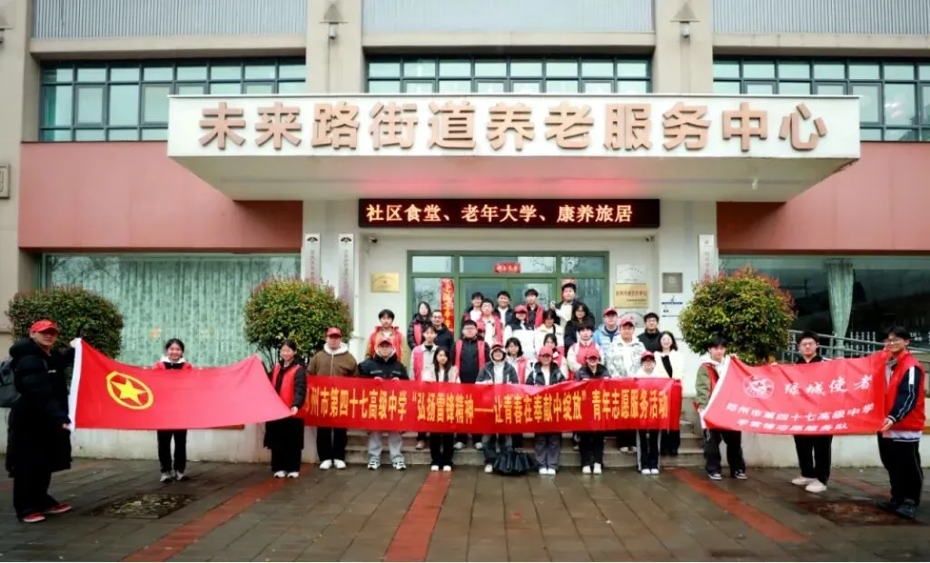 三月春雨绵绵,暖意悄然涌动。三月学雷锋主题活动开展以来,紧扣全国第 63 个 “学雷锋纪念日”、第 27 个中国青年志愿者服务日要求,大力弘扬雷锋精神与志愿精神,3月17日下午,郑州市第四十七高级中学36名师生志愿者冒雨前往未来路街道养老服务中心,开展“赓续雷锋精神 激扬青春力量”主题志愿服务,用青春陪伴为老人们送去春日温情。