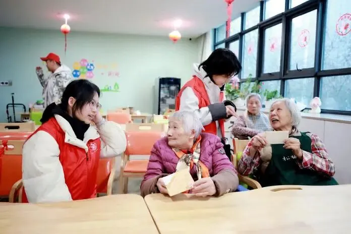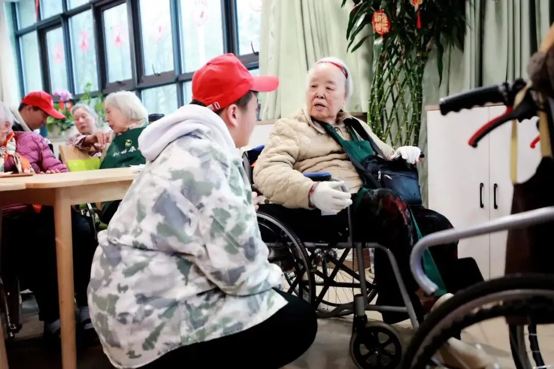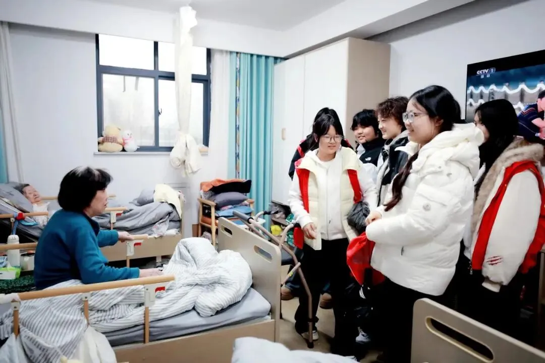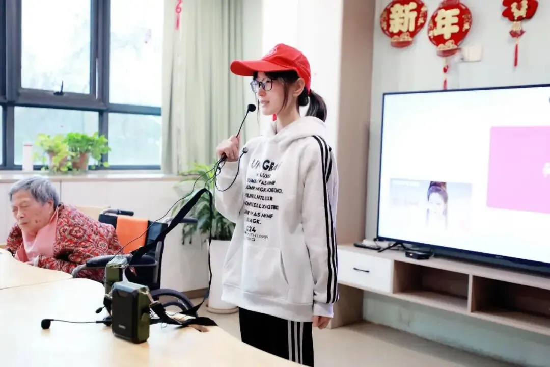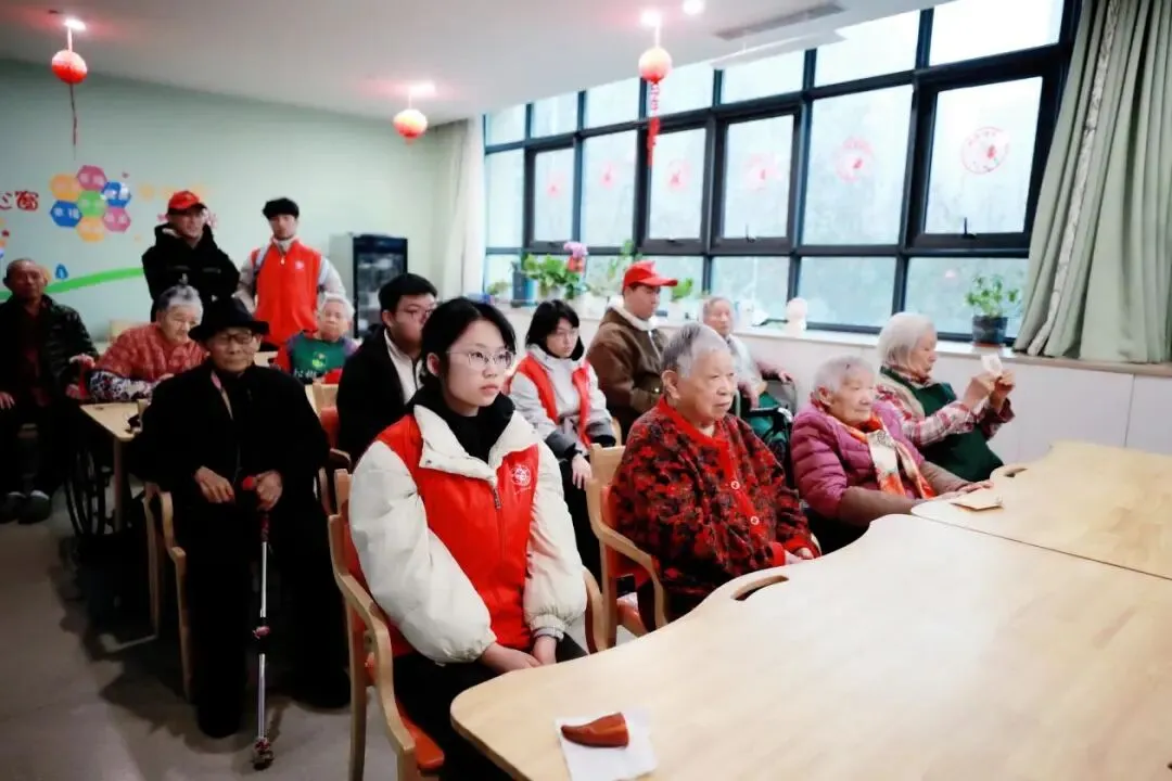 抵达目的地后,志愿者们快速分组行动,全程温柔细致、有条不紊。一组在活动大厅与老人们围坐畅谈,分享校园趣事,静静聆听老人的过往经历,轻声细语间拉近彼此距离,欢声笑语填满整个大厅;另一组深入房间,陪伴行动不便的老人,耐心倾听日常琐事,贴心整理内务、调节环境,对听力不佳的老人俯身交流,用点滴细节传递关爱。