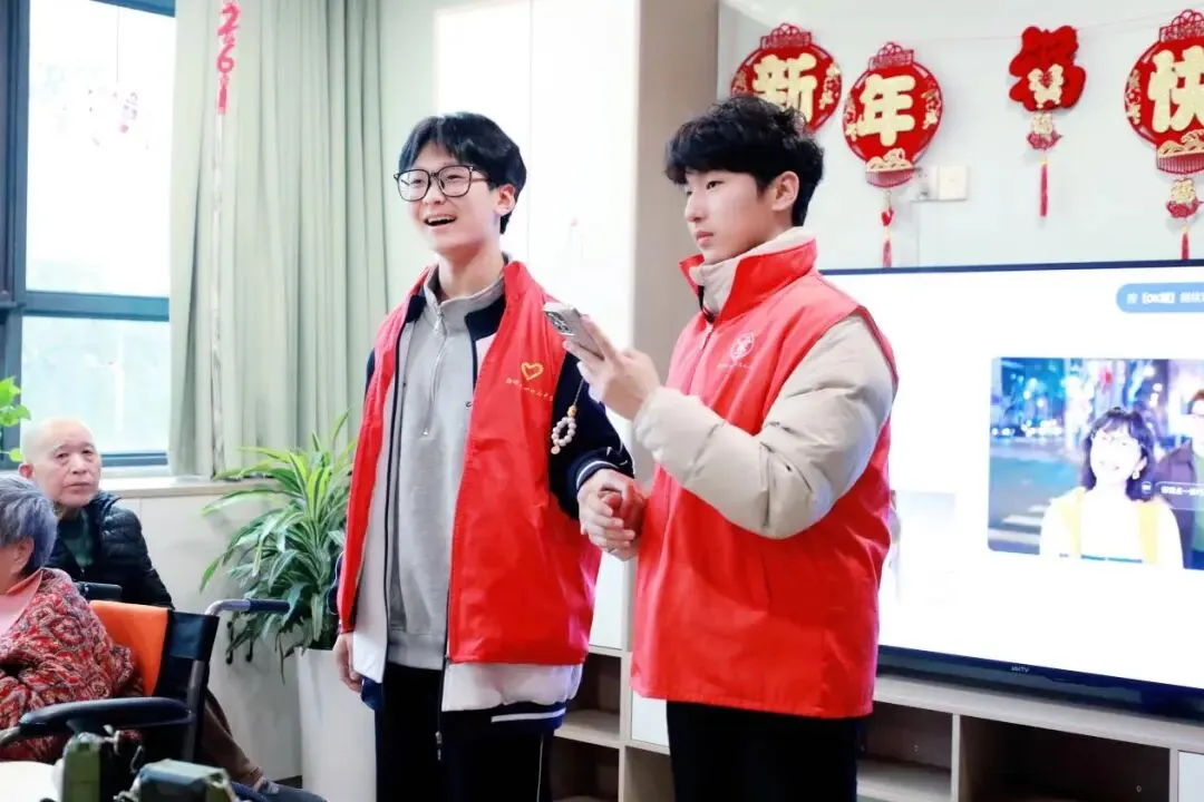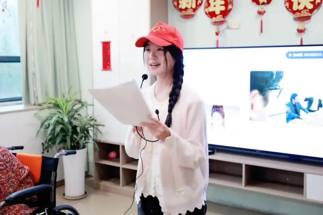 陪伴结束后,一场简约却饱含深情的文艺汇演暖心开场。首先登场的是高一 11 班赵小媛,悠扬旋律唤起老人们的青春记忆。同班周妍如带来戏曲表演,身段唱腔赢得阵阵掌声。高韵涵诗朗诵声情并茂,真挚动人。高一 18 班赵雪绒演绎戏曲《花木兰》,唱念做打兼具动作演示,深受老人喜爱。高一中美 1 班郭则延舞蹈活力满满,尽显青春朝气。最后,高二 17 班王安果、高一中美 1 班王溢通领唱《我和我的祖国》,全体志愿者与老人齐声高歌,现场温情满满。