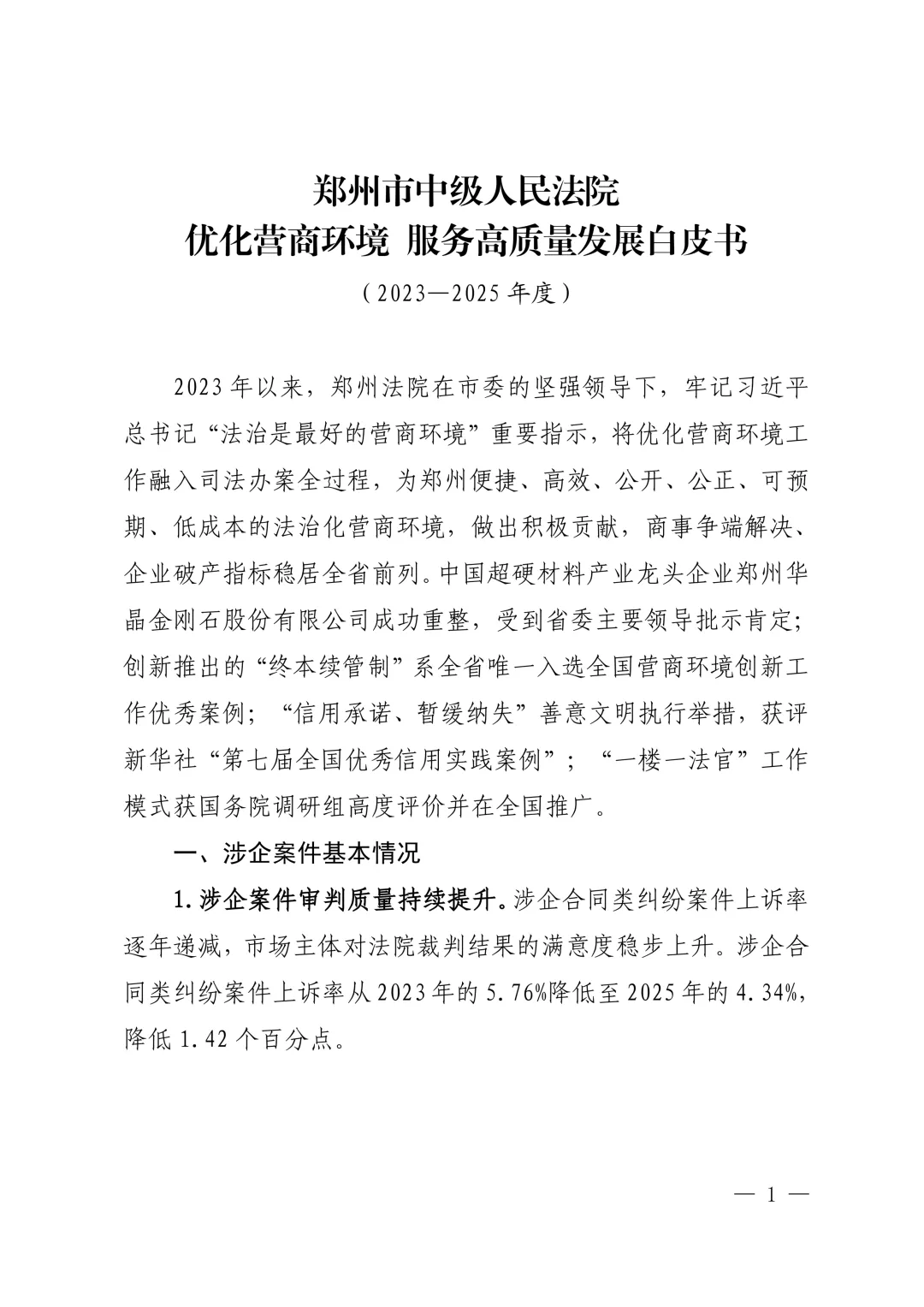 当前位置:首页>郑州>郑州市中级人民法院优化营商环境服务高质量发展白皮书(2023-2025年度)
