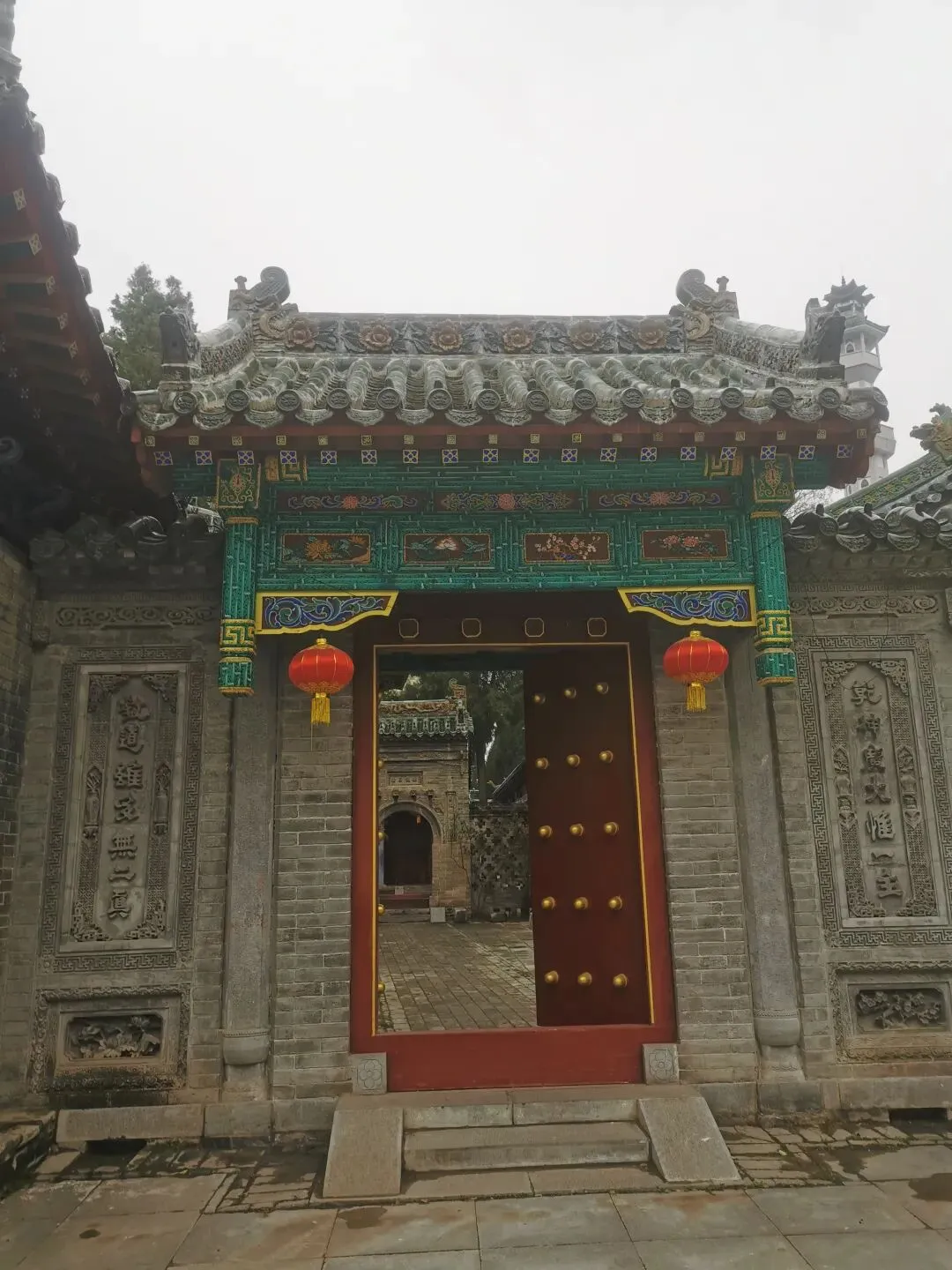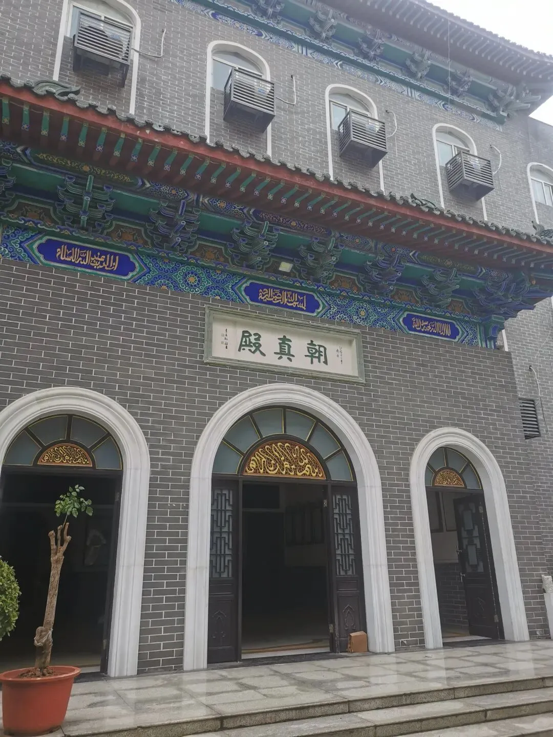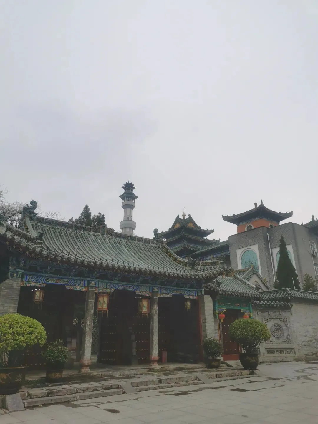 看这个门匾门洞,你可能已猜到,这个古建筑群与伊斯兰穆斯林清真寺有关。出发前,在高德地图目的地上输入这个清真寺名字的时候,还有所担心,别像以往有时候导航坐公交,倒几回车去了,结果让人失望,看了个“寂寞”。看到这个门匾、门洞和里面的建筑,我不由惊喜,看来不枉此行。门洞两侧,右边是一典型伊斯兰装饰侧门。门两边嵌有对联:乾坤广大惟一主,教道虽多无二真。左边侧门,古朴厚重。嵌联:要识得珠须返岸,若思边海早修船。2013年4月,被中华人民共和国国务院公布为“全国重点文物保护单位”。郑州清真寺因地处北大街,故又名北大街清真寺、北大清真寺或北大寺,是伊斯兰教在郑州建造最早、规模最大的清真寺。始建于元末明初。郑州北大清真寺有明代宣德炉两只,为稀世之物。本寺是全国重点文物保护单位,郑州旅游胜地,前来该寺观光礼拜的人数甚多。郑州北大清真寺是伊斯兰教的一种象征。郑州北大清真寺,位于郑州市管城区北大街128号。寺院占地近17亩,主要建筑包括望月楼、大殿等,采用中国传统宫殿式建筑风格。望月楼小巧玲珑,是寺中特有建筑,用于观月斋戒。寺内还存有清代碑刻16通。1953年和1982年,郑州市政府两次拨款翻修。