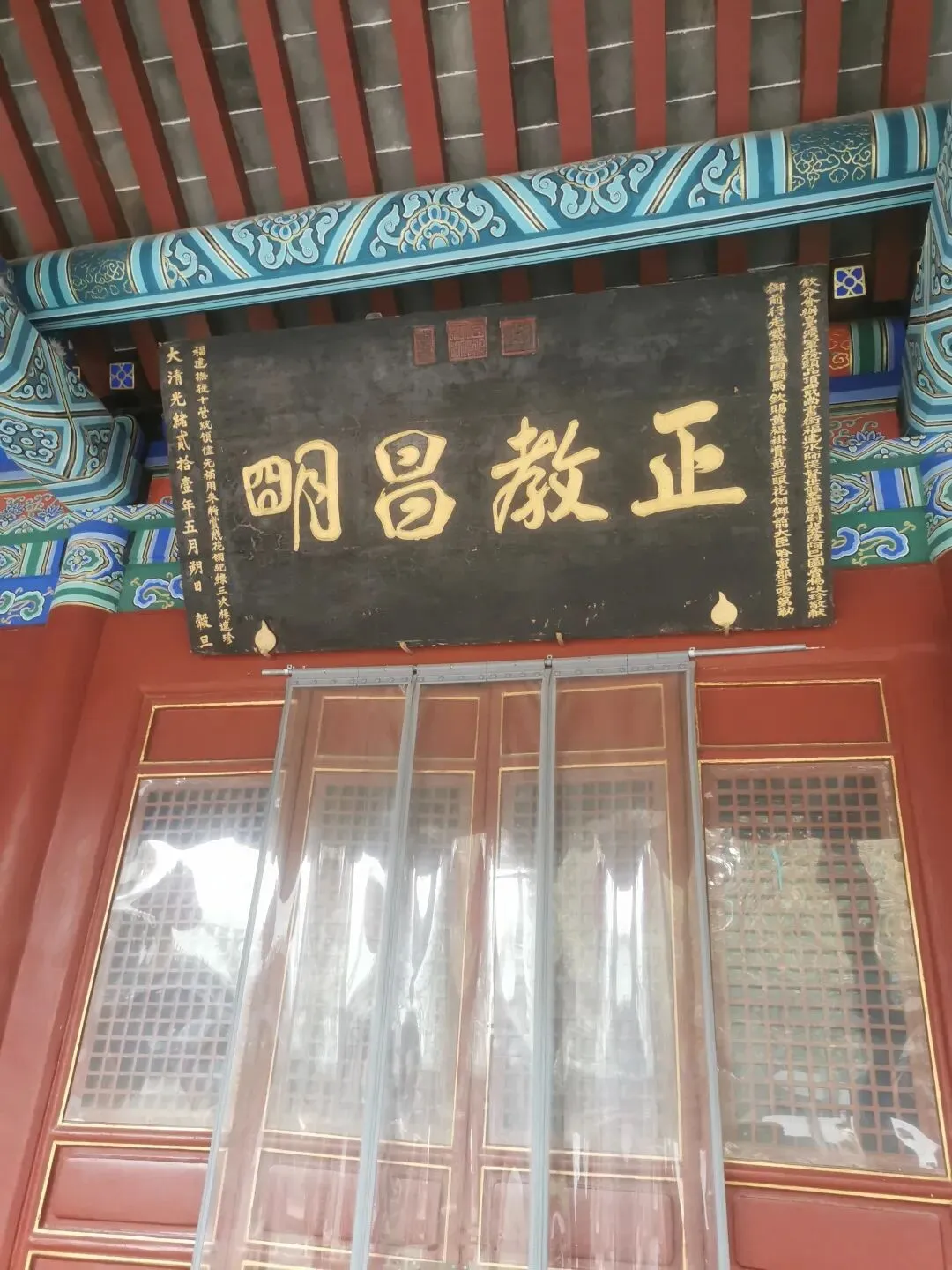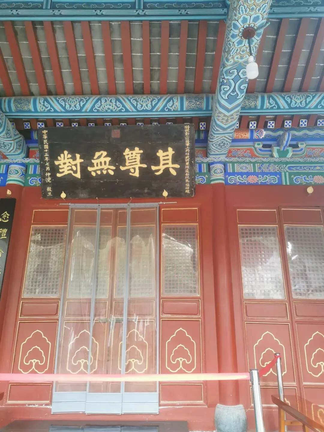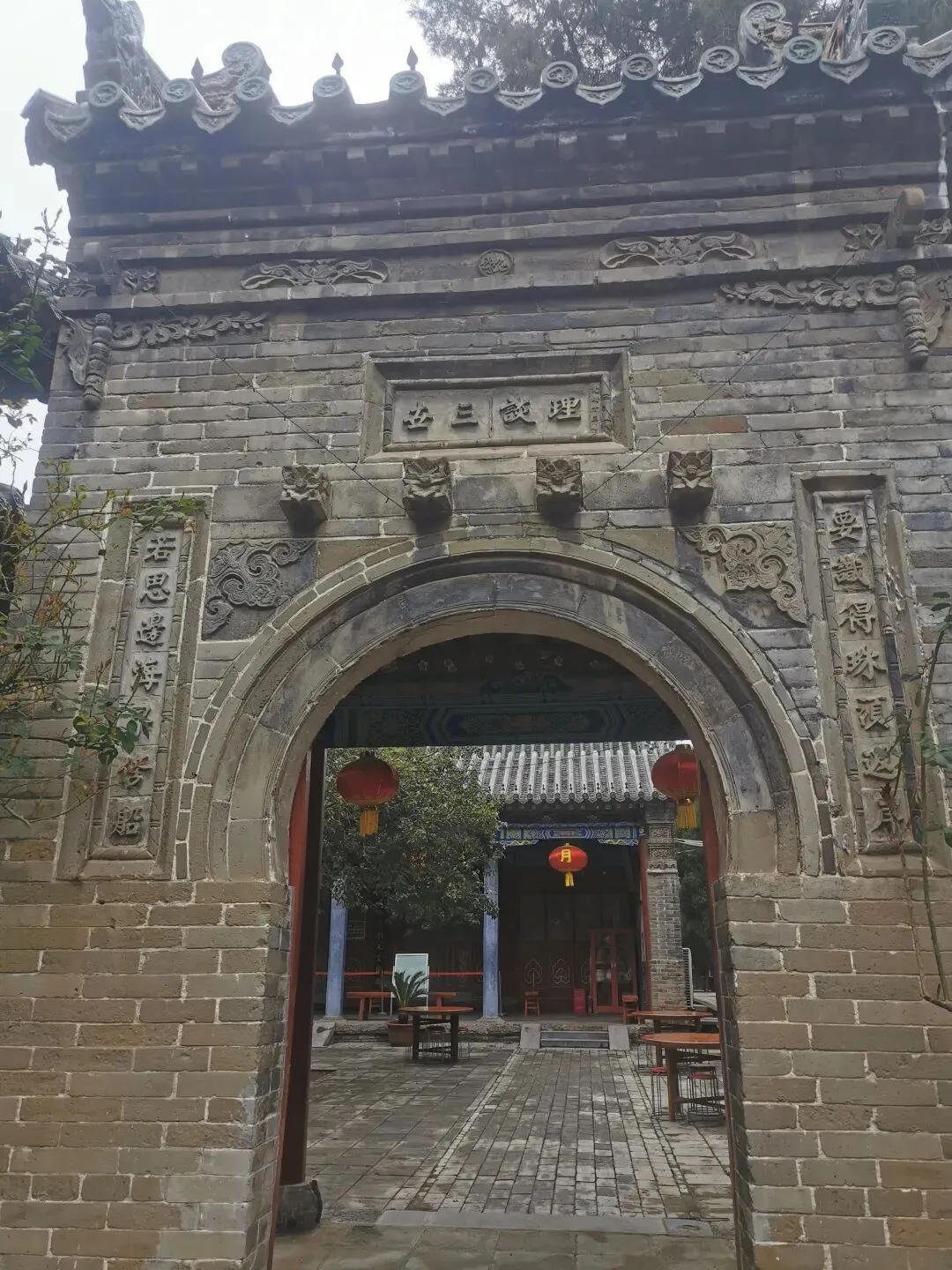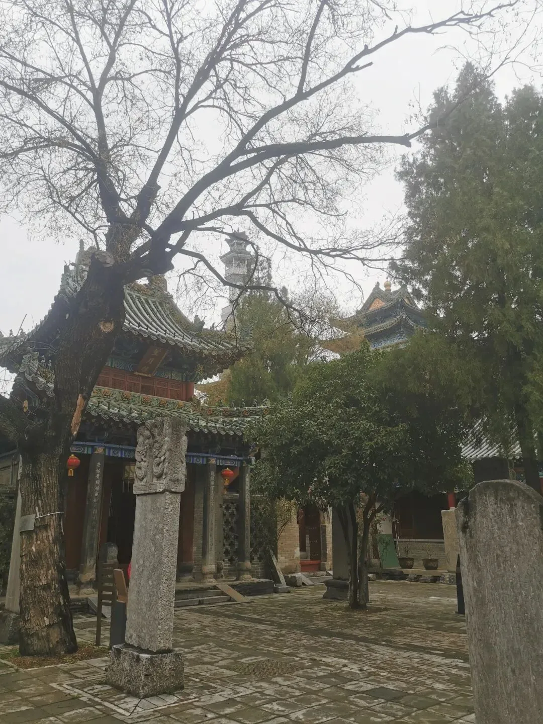 看这个门匾门洞,你可能已猜到,这个古建筑群与伊斯兰穆斯林清真寺有关。出发前,在高德地图目的地上输入这个清真寺名字的时候,还有所担心,别像以往有时候导航坐公交,倒几回车去了,结果让人失望,看了个“寂寞”。看到这个门匾、门洞和里面的建筑,我不由惊喜,看来不枉此行。门洞两侧,右边是一典型伊斯兰装饰侧门。门两边嵌有对联:乾坤广大惟一主,教道虽多无二真。左边侧门,古朴厚重。嵌联:要识得珠须返岸,若思边海早修船。2013年4月,被中华人民共和国国务院公布为“全国重点文物保护单位”。郑州清真寺因地处北大街,故又名北大街清真寺、北大清真寺或北大寺,是伊斯兰教在郑州建造最早、规模最大的清真寺。始建于元末明初。郑州北大清真寺有明代宣德炉两只,为稀世之物。本寺是全国重点文物保护单位,郑州旅游胜地,前来该寺观光礼拜的人数甚多。郑州北大清真寺是伊斯兰教的一种象征。郑州北大清真寺,位于郑州市管城区北大街128号。寺院占地近17亩,主要建筑包括望月楼、大殿等,采用中国传统宫殿式建筑风格。望月楼小巧玲珑,是寺中特有建筑,用于观月斋戒。寺内还存有清代碑刻16通。1953年和1982年,郑州市政府两次拨款翻修。