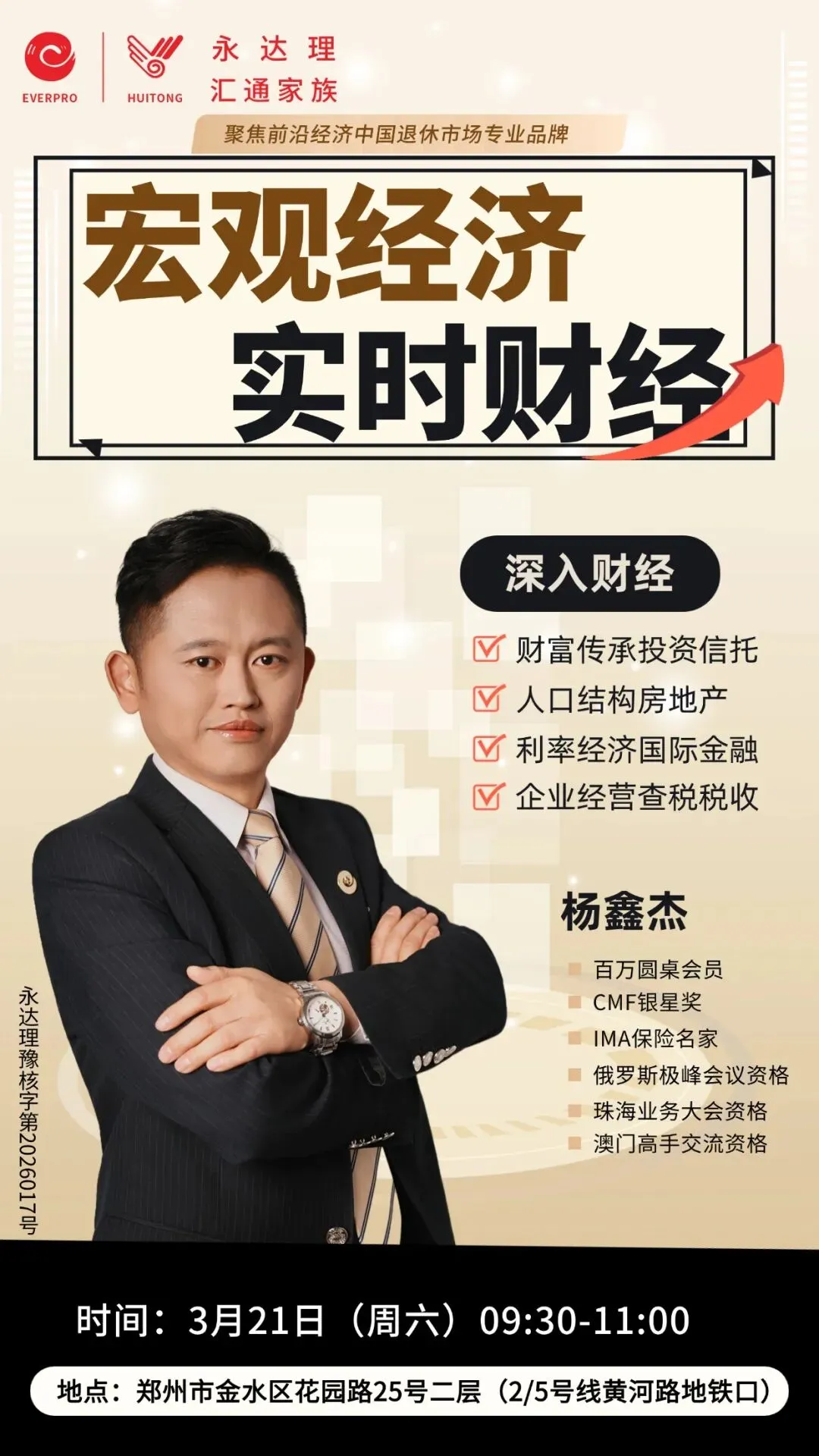 本场财经讲座由永达理保险经纪公司河南分公司主讲,不售卖产品,欢迎报名。