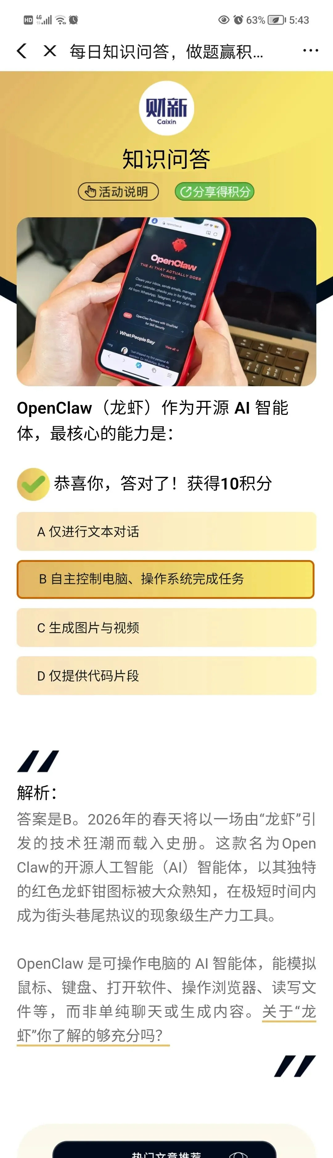 2026年的春天将以一场由“龙虾”引发的技术狂潮而载入史册。这款名为Open Claw的开源人工智能(AI)智能体,以其独特的红色龙虾钳图标被大众熟知,在极短时间内成为街头巷尾热议的现象级生产力工具。